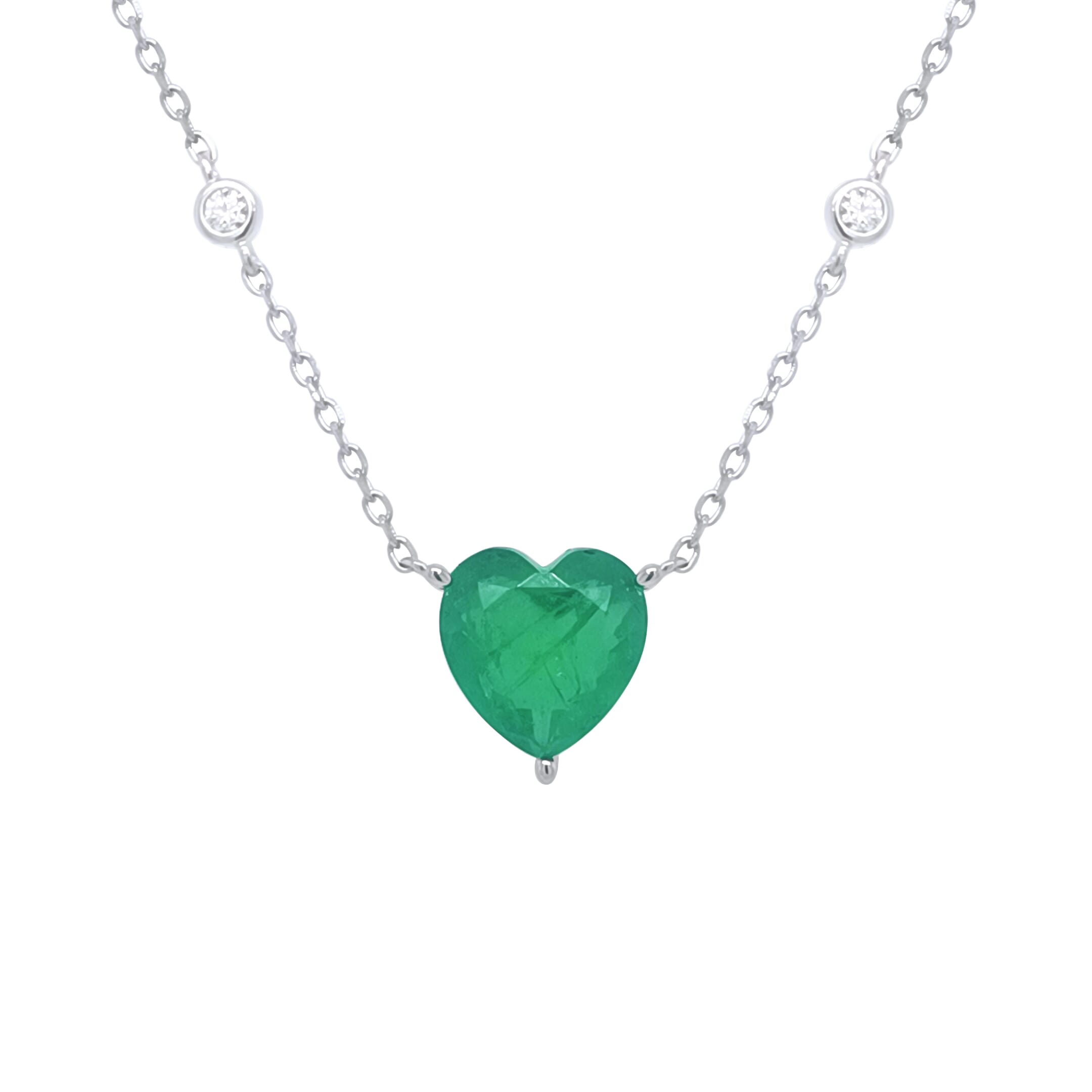 Asfour Crystal Chain Necklace With Emerald Zircon Heart In 925 Sterling Silver-ND0388-G