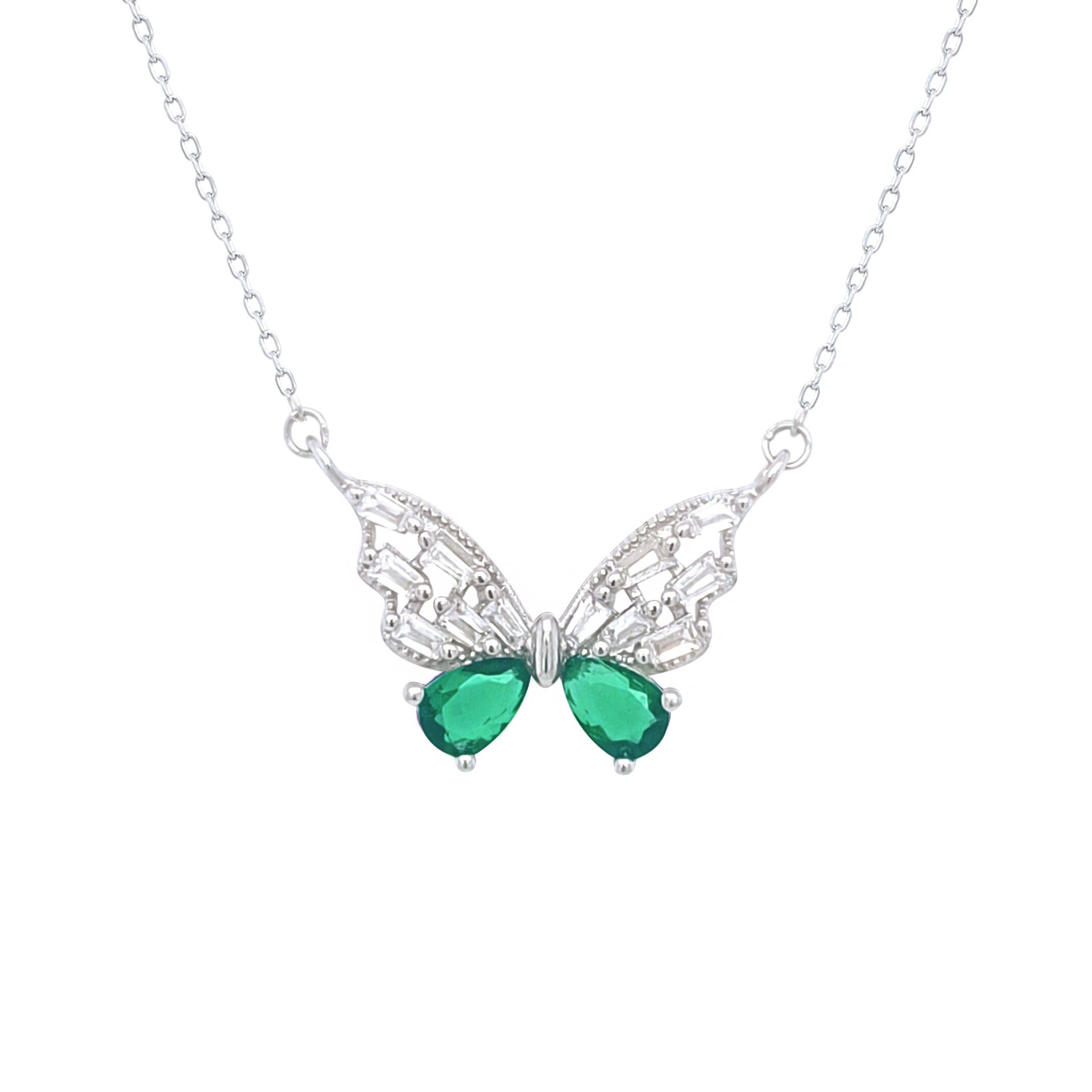 عصفور كريستال سلسلة فضة عيار 925 علي شكل فراشة خضراء مرصعة بالزركون - ND0438-WG