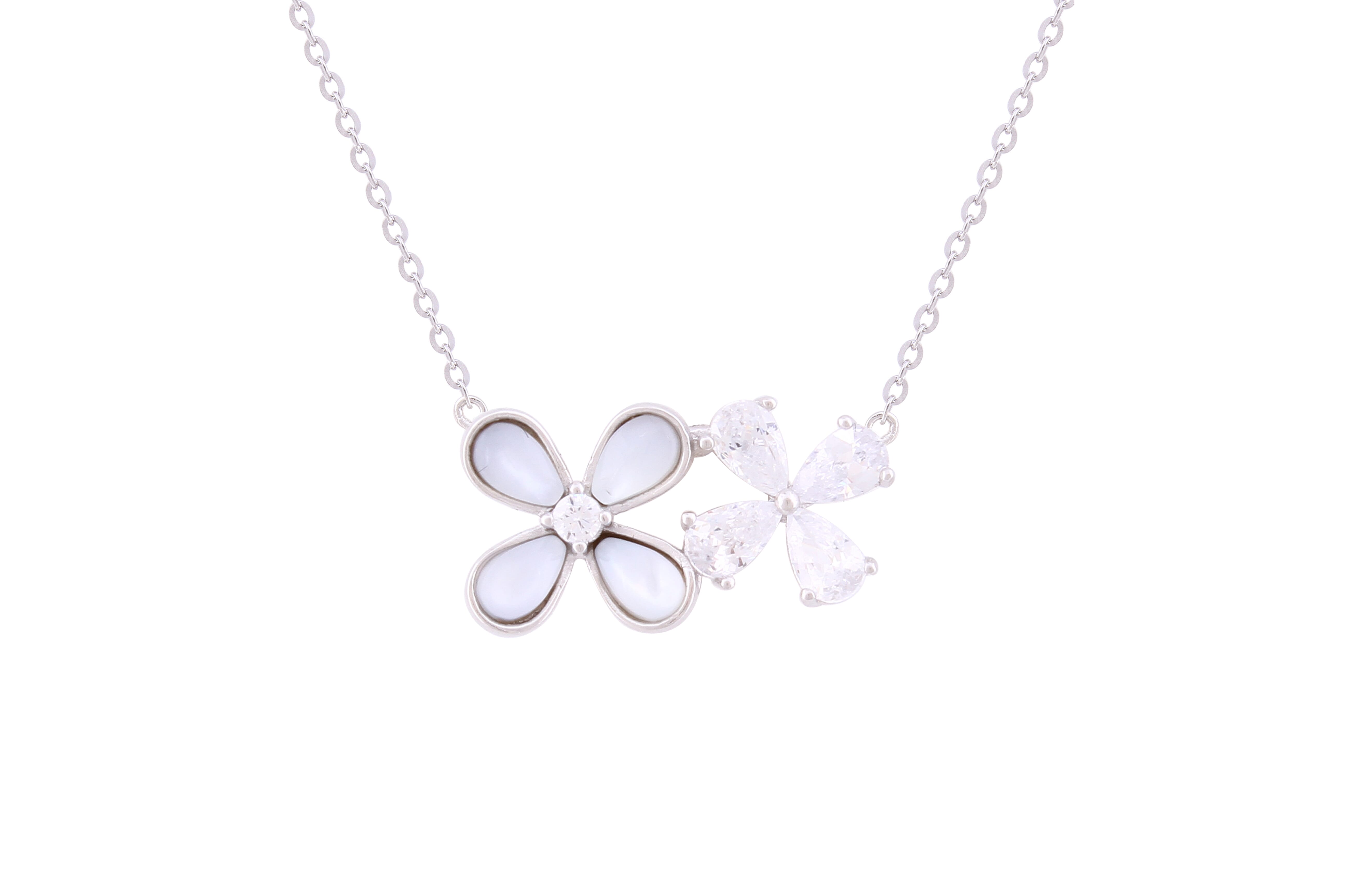 Asfour Crystal Chain Necklace With Flowers Pendant In 925 Sterling Silver ND0232