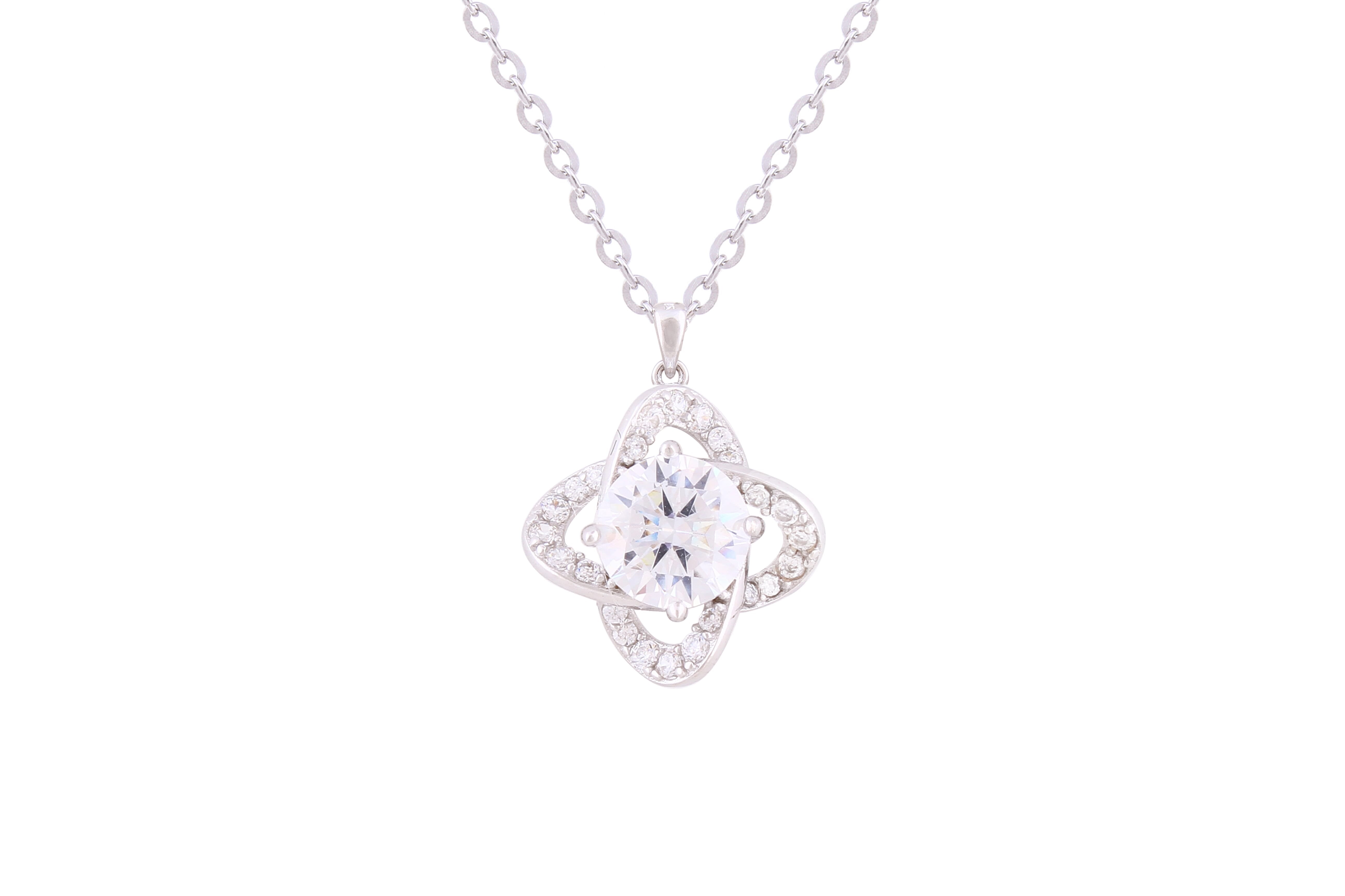 Asfour Crystal Chain Necklace With Four Leaf Clover Zircon Pendant In 925 Sterling Silver ND0235