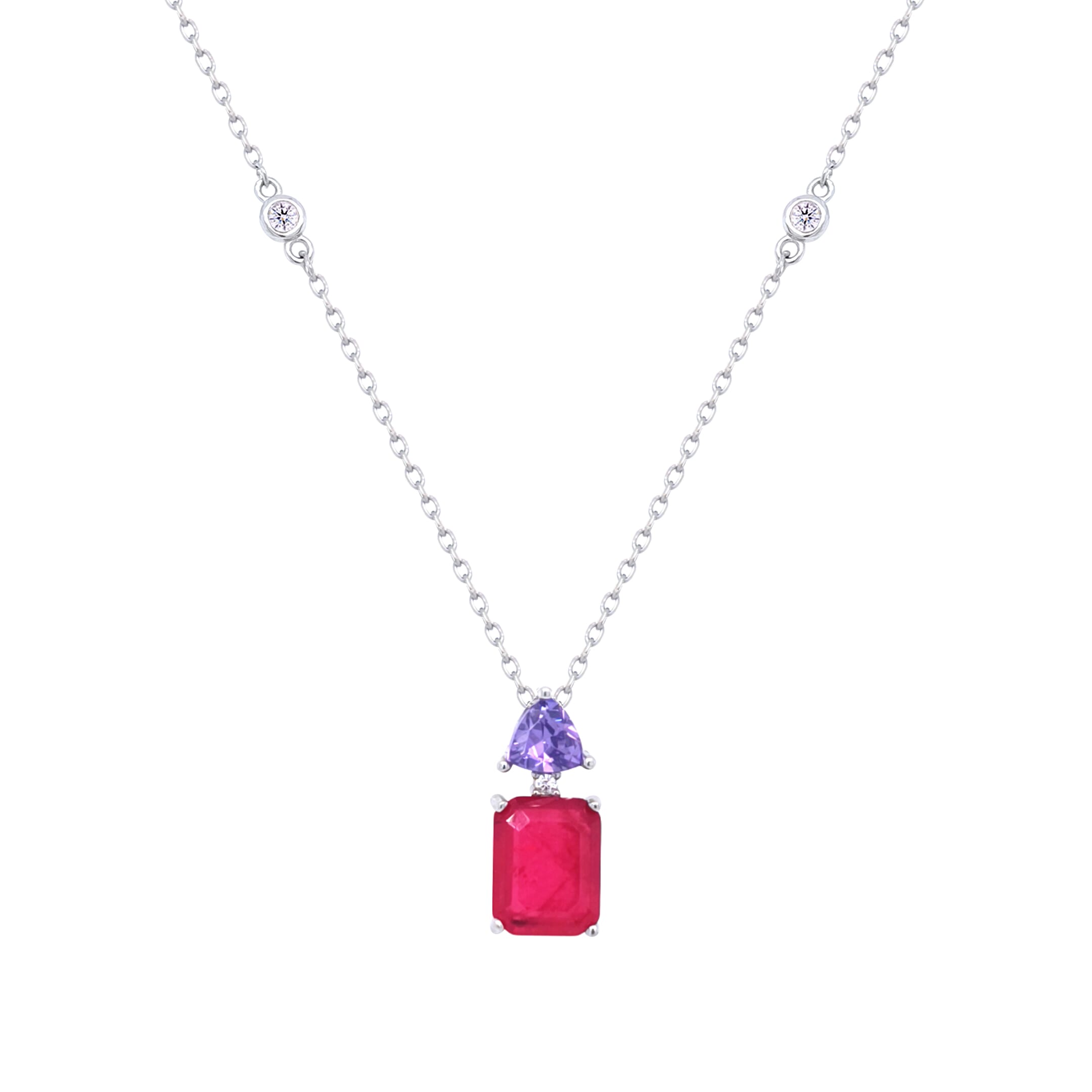 عصفور كريستال سلسلة فضة عيار 925 بتصميم اميرالد فوشيا مرصع بفص زركون تنزانيت - ND0435-FN