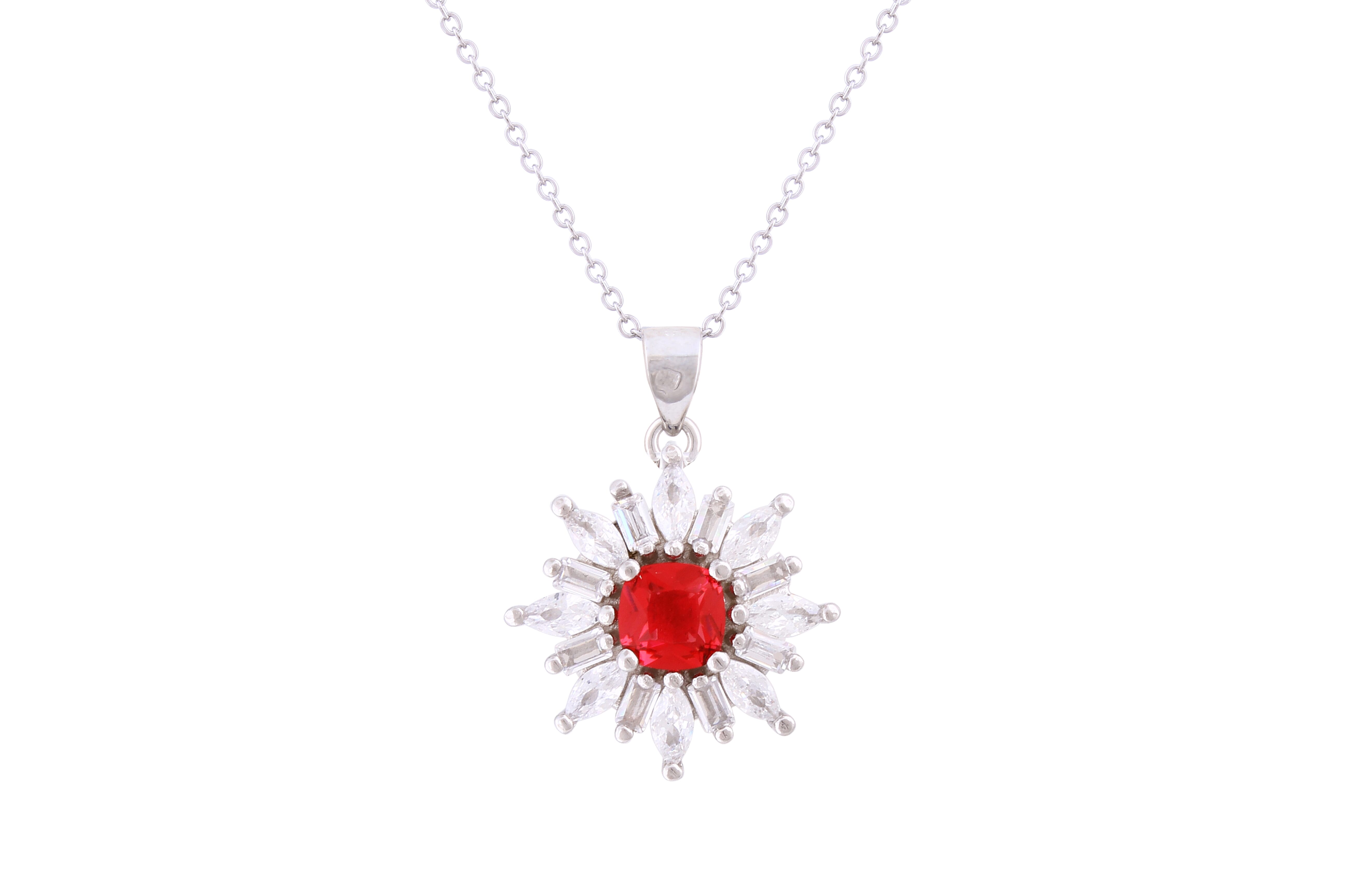 Asfour Crystal Chain Necklace With Fuchsia Flower Pendant With Zircon In 925 Sterling Silver ND0267-WF