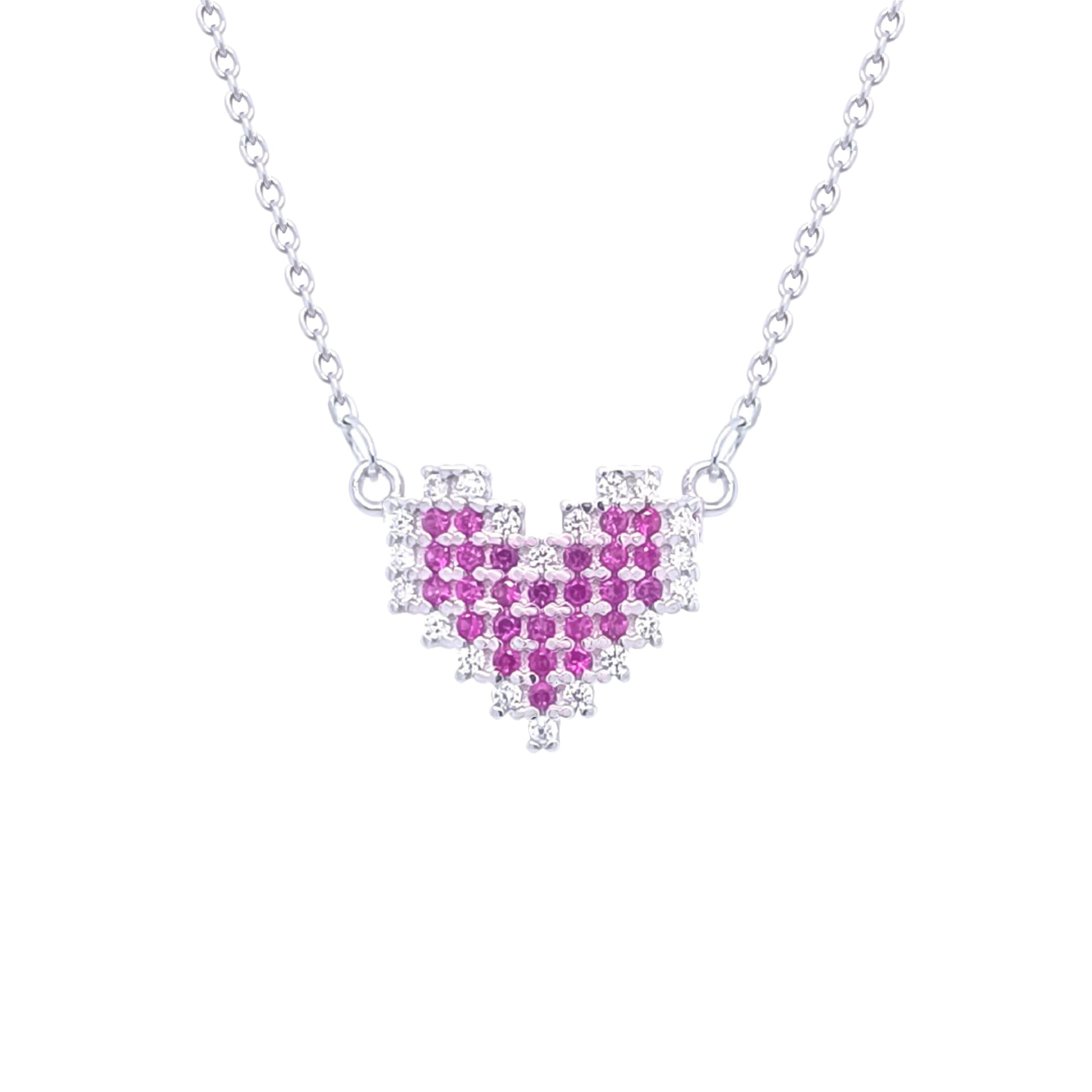 Asfour Crystal Chain Necklace With Fuchsia Heart Pendant In 925 Sterling Silver-ND0321-WF