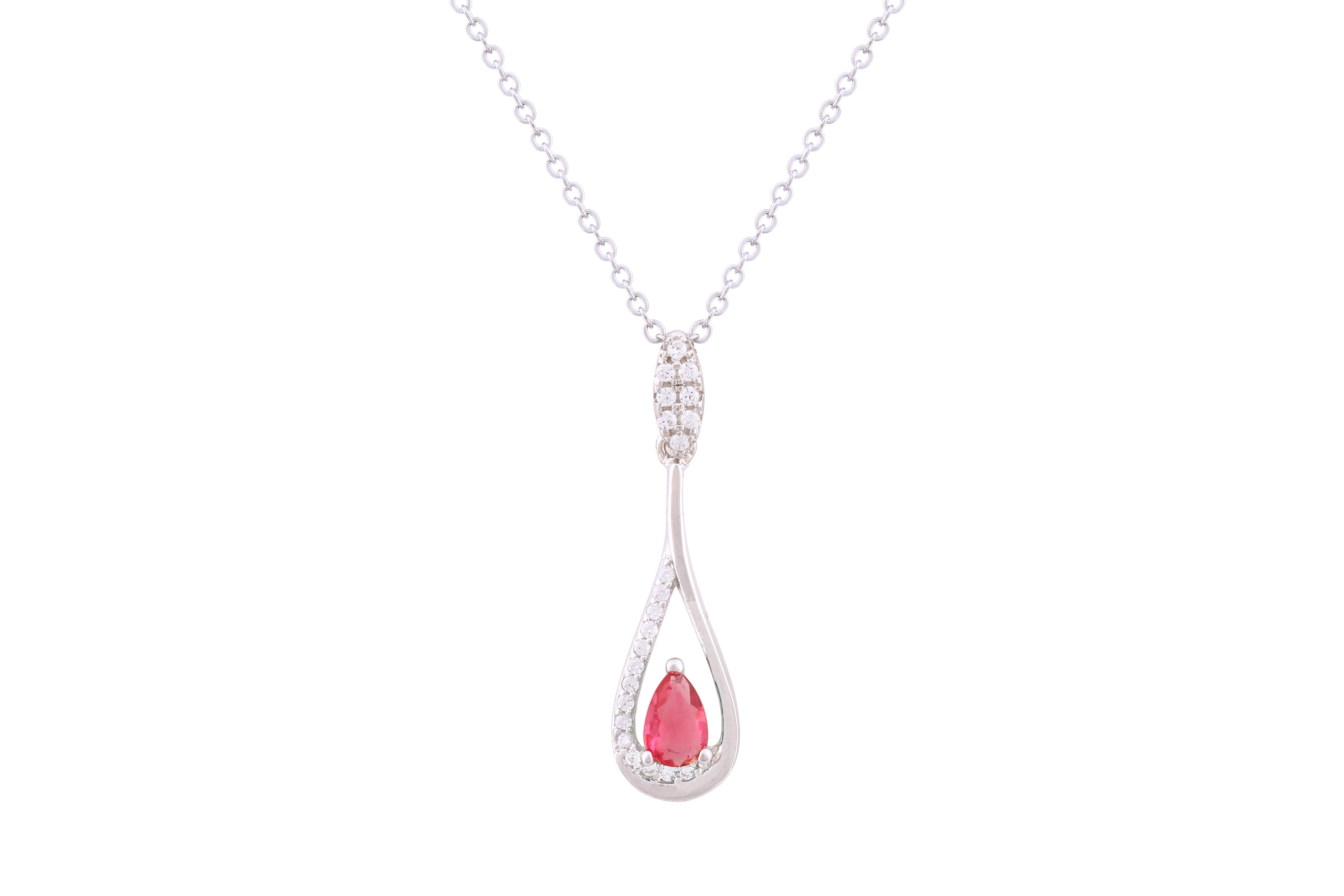 Asfour Crystal Chain Necklace With Fuchsia Pear Zircon Stone In 925 Sterling Silver ND0274-WF