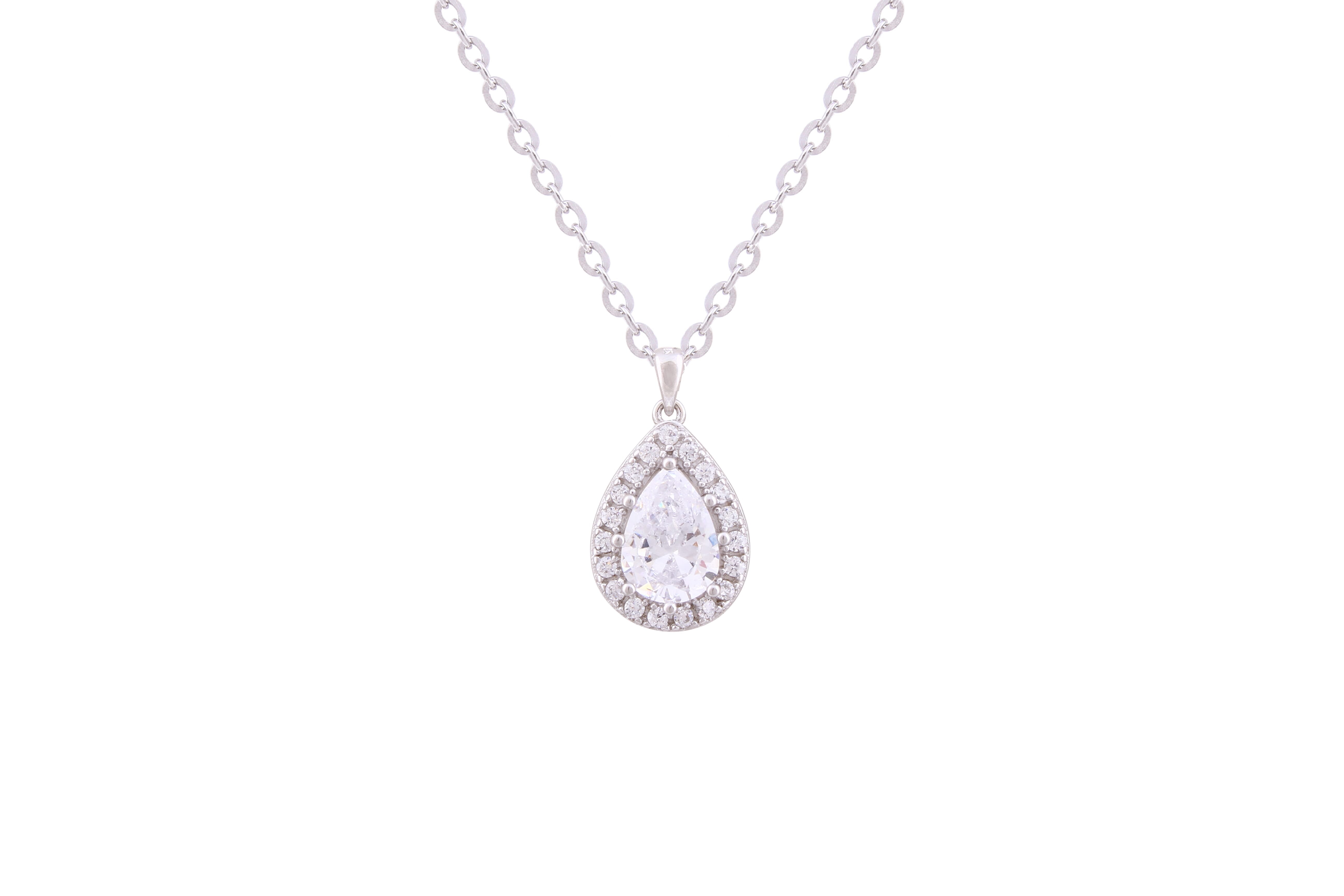 Asfour Crystal Chain Necklace With Halo Pear Pendant In 925 Sterling Silver ND0248