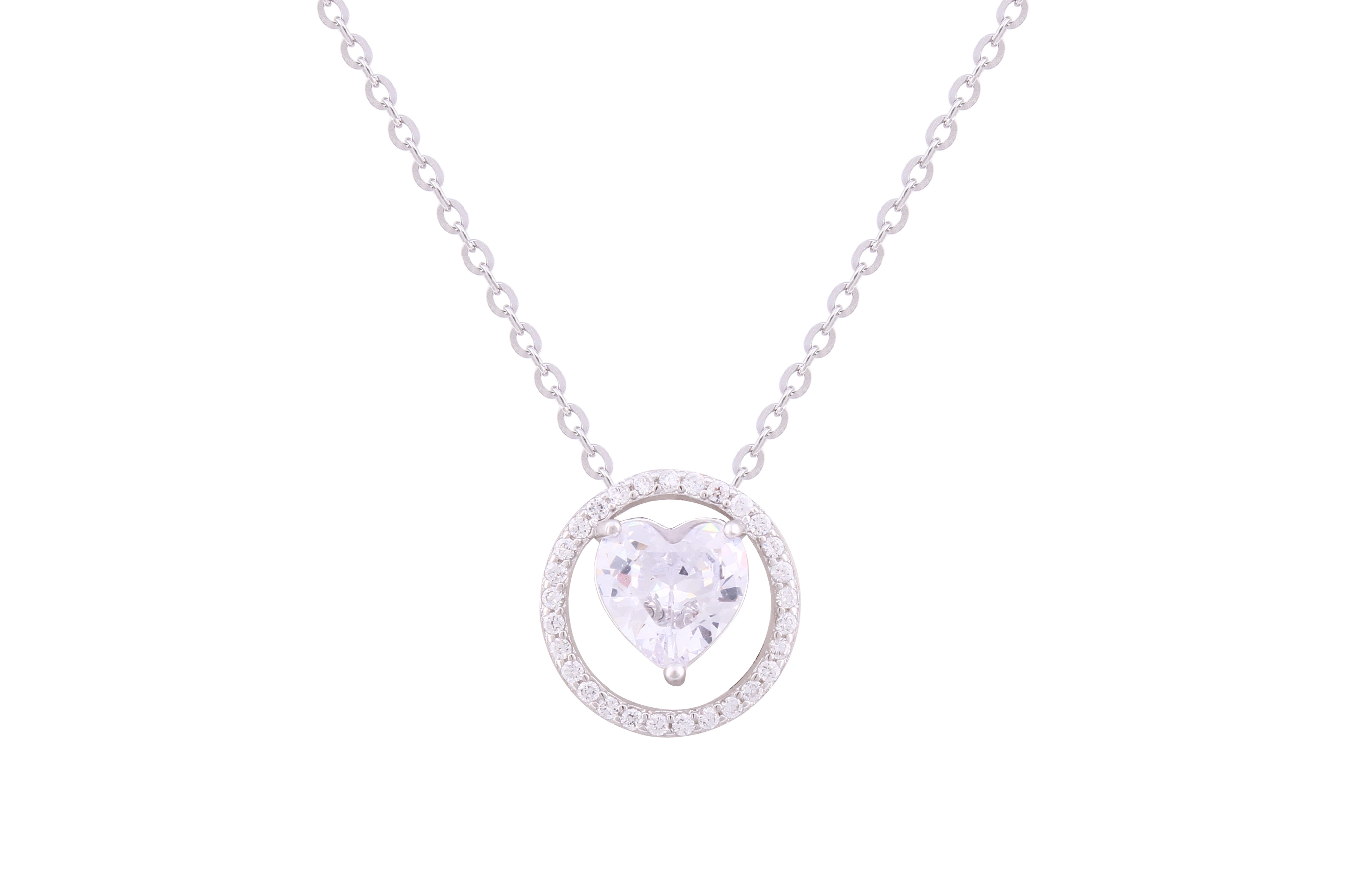 Asfour Crystal Chain Necklace With Heart Inside Circle Pendant In 925 Sterling Silver ND0263