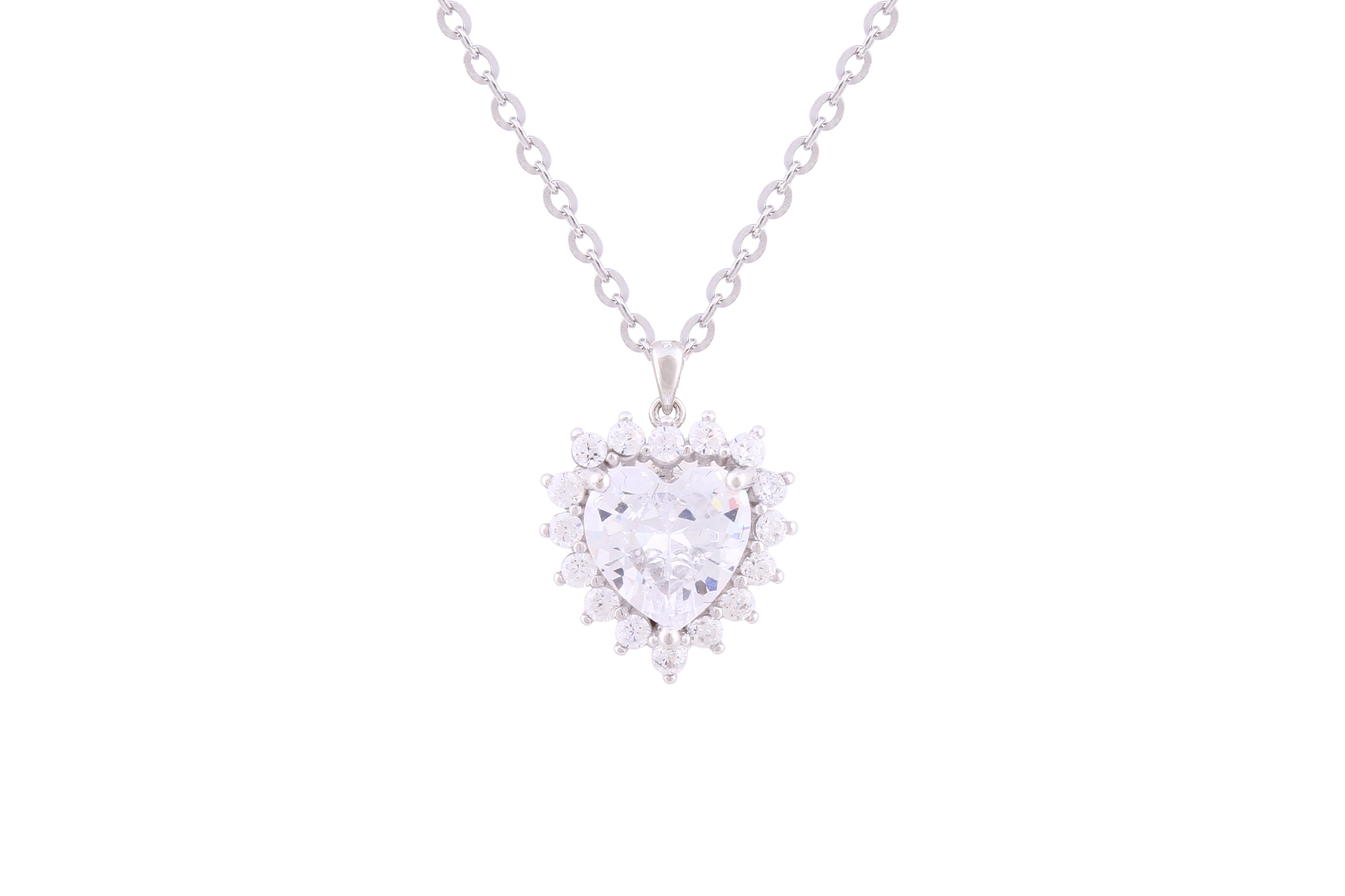 Asfour Crystal Chain Necklace With Heart Pendant Inlaid With Zircon In 925 Sterling Silver ND0229