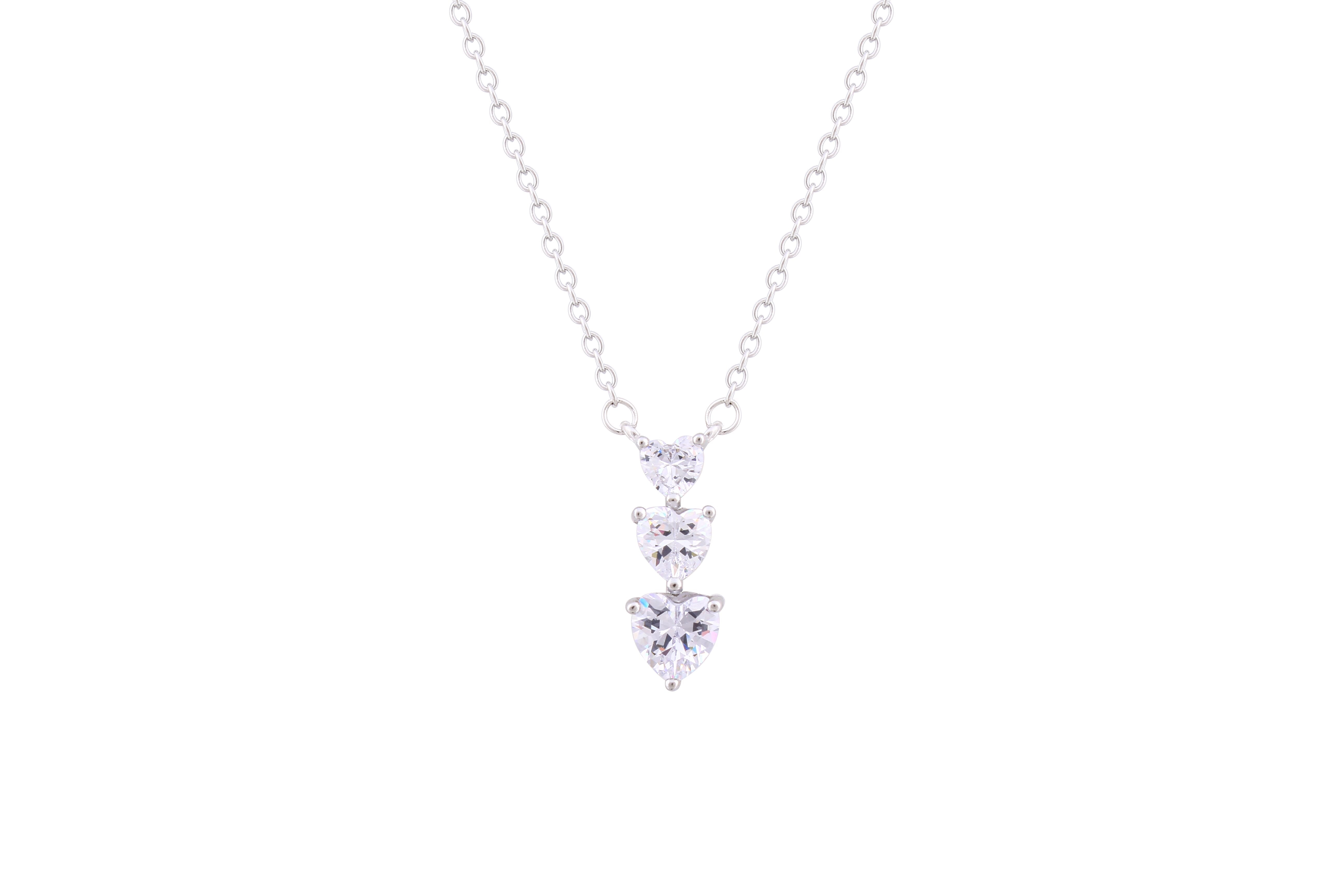 Asfour Crystal Chain Necklace With Hearts Pendant In 925 Sterling Silver ND0104