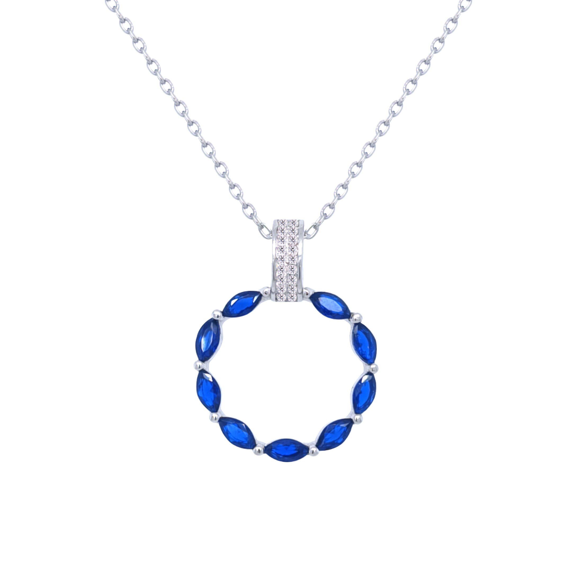 عصفور كريستال سلسلة فضة عيار 925 علي شكل حلقة مرصعة بفصوص زركون زرقاء - ND0433-B