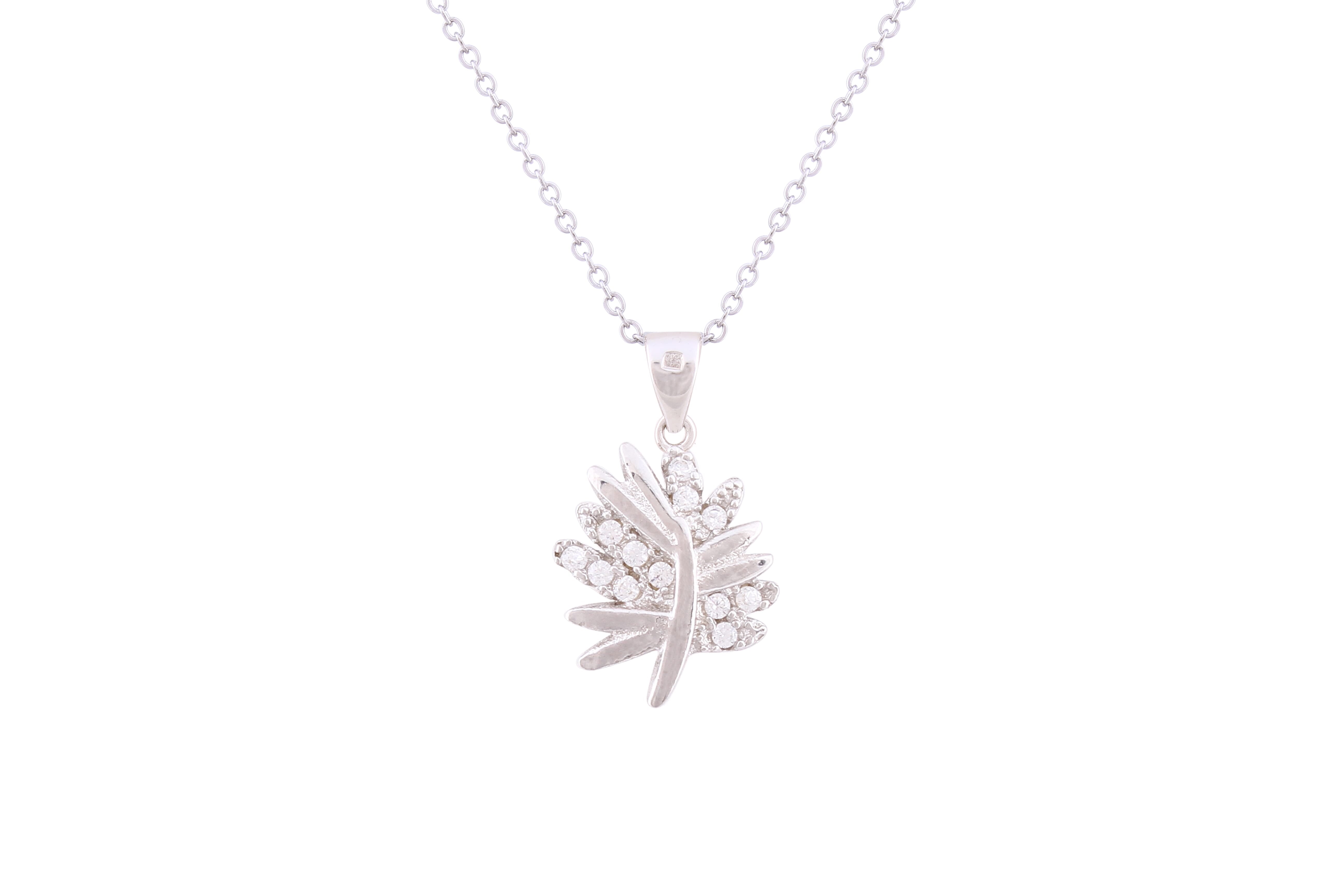 Asfour Crystal Chain Necklace With Leaf Pendant In 925 Sterling Silver ND0212