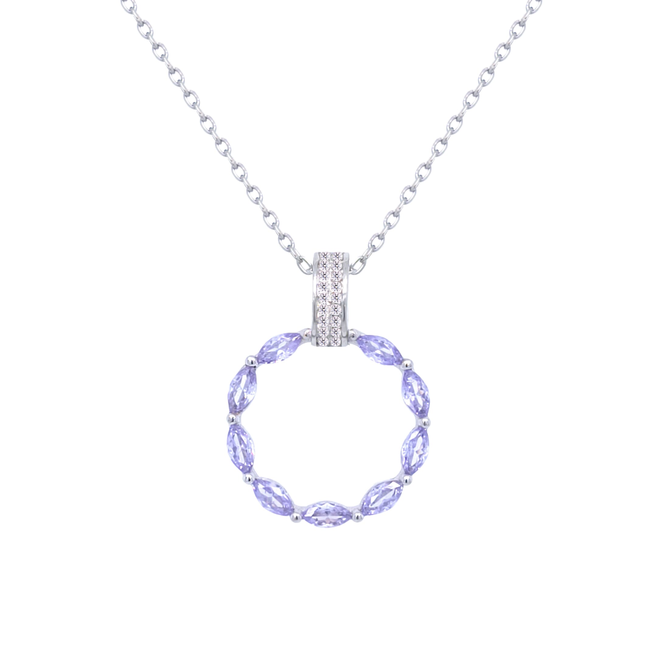Asfour Crystal Chain Necklace With Light Tenzanite Hollow Circle Pendant In 925 Sterling-ND0433-LN