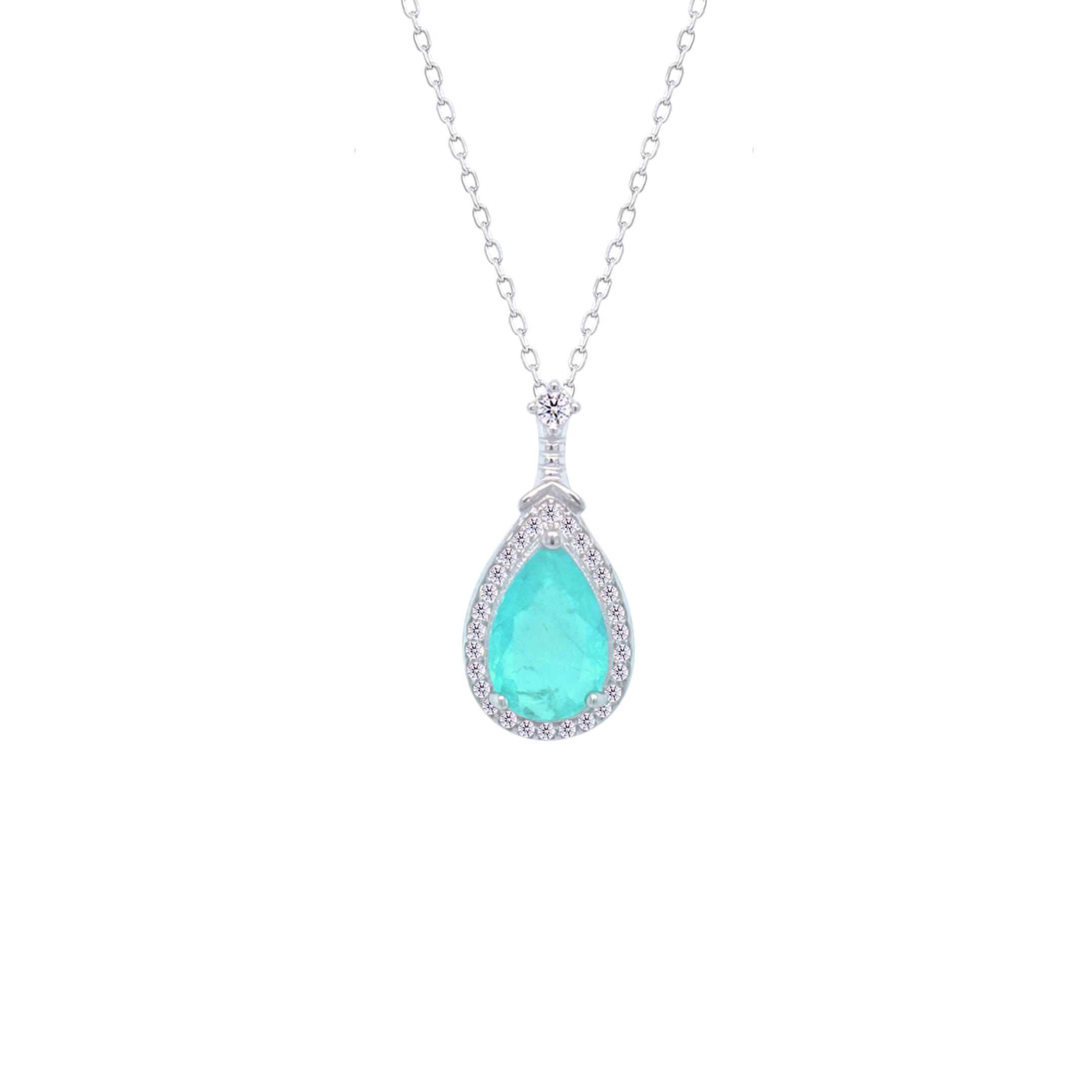 عصفور كريستال سلسلة فضة عيار 925 بتصميم كمثري لون تركواز فاتح مرصعة بالزركون - ND0442-LGC