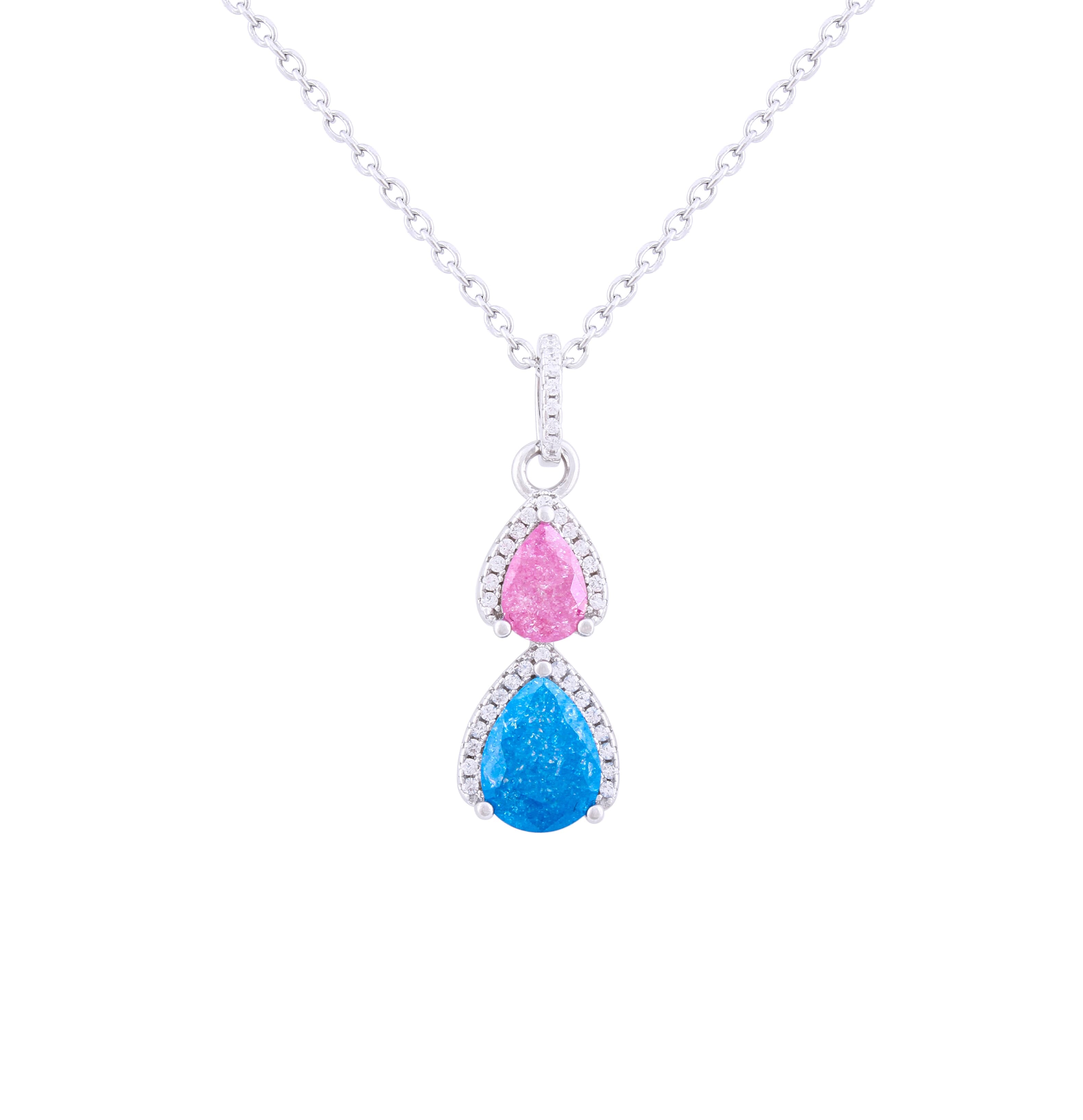 Asfour Crystal Chain Necklace With Multi Color Pear Pendant In 925 Sterling Silver-NR0499-MO-A