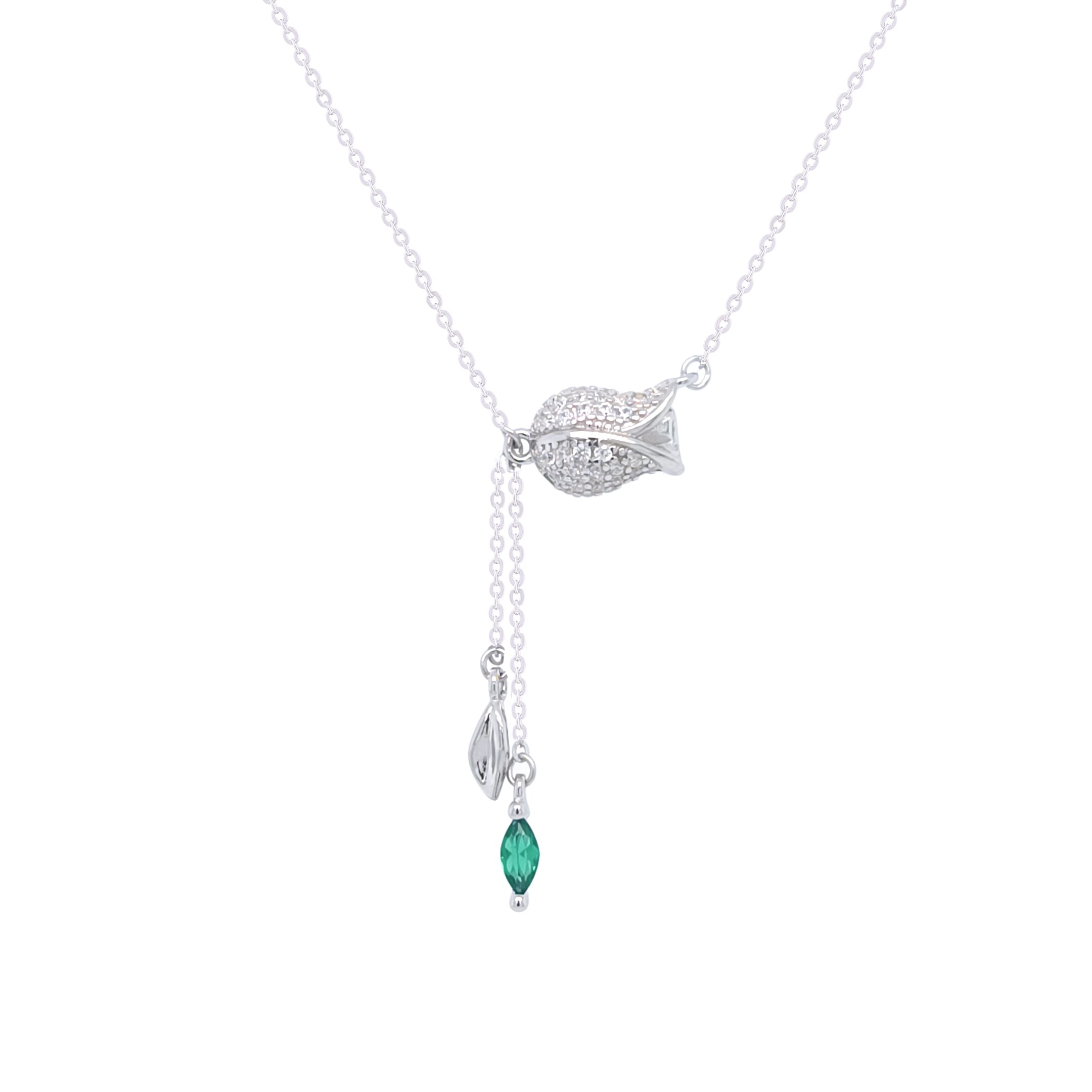 عصفور كريستال سلسلة فضة عيار 925 بتصميم وردة مرصعة بالزركون - NR0549-WG