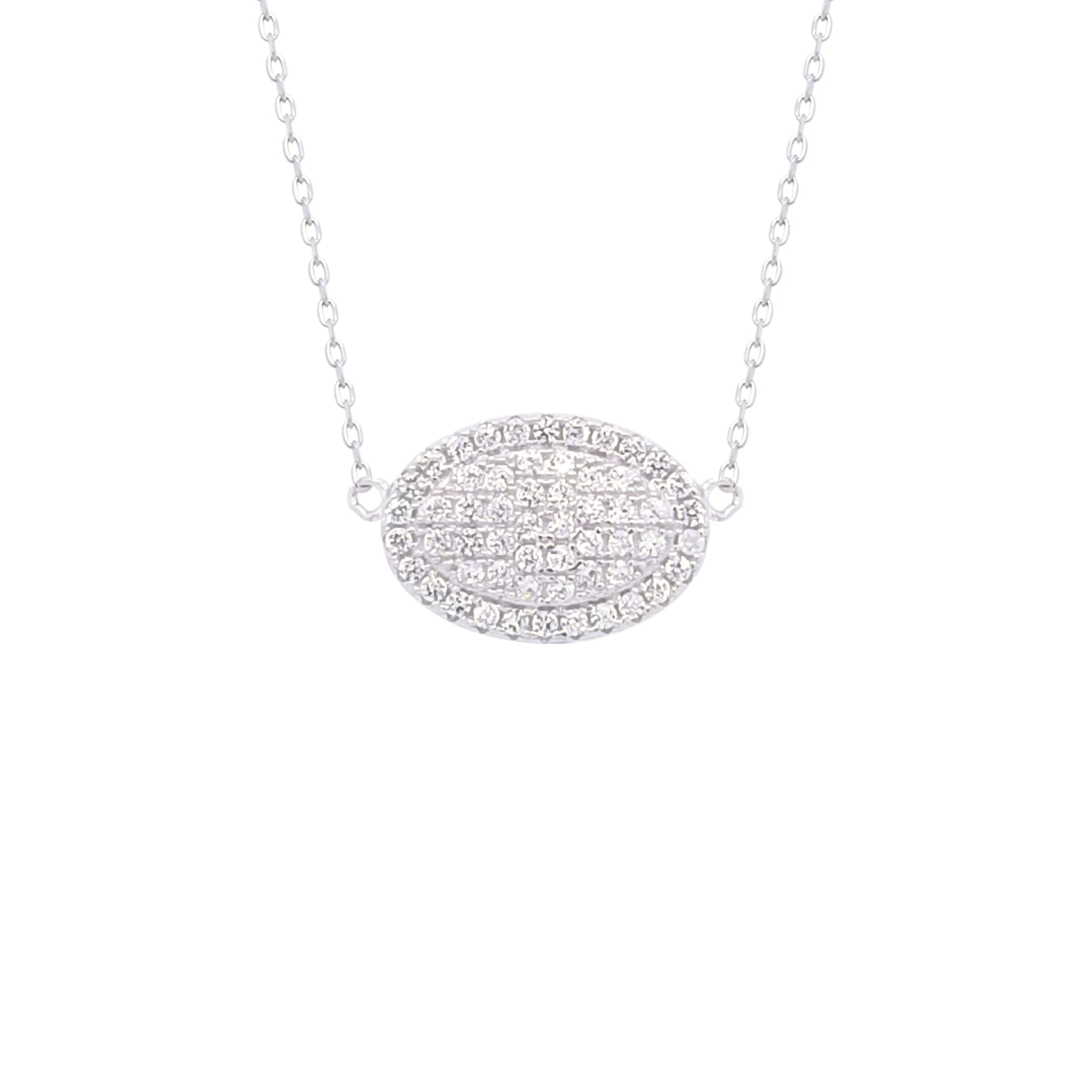 Asfour Crystal Chain Necklace With Oval Pendant Inlaid With Zircon In 925 Sterling Silver-ND0337