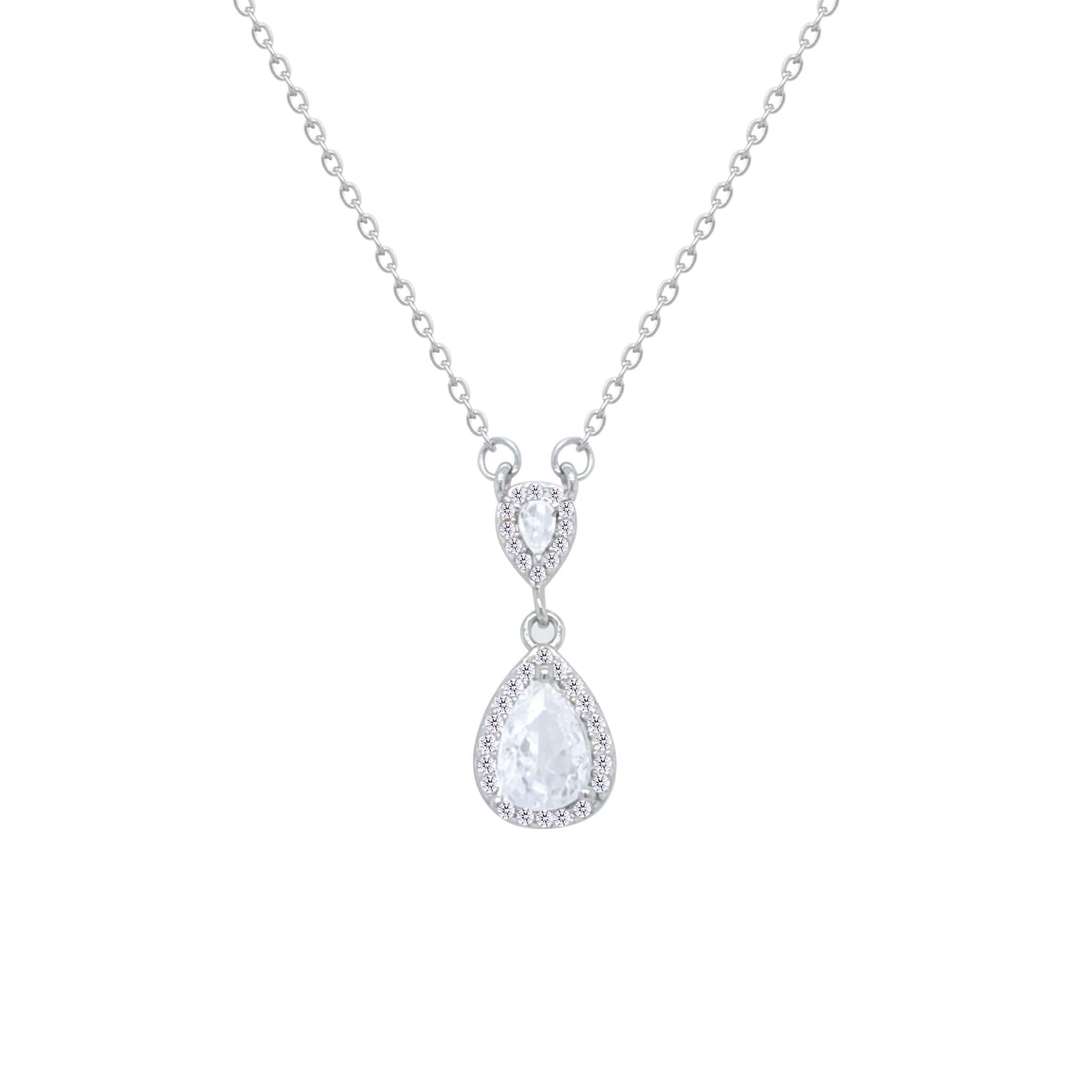 عصفور كريستال سلسلة فضة عيار 925 بتصميم علي شكل كمثري مرصع بالزركون - NM0033