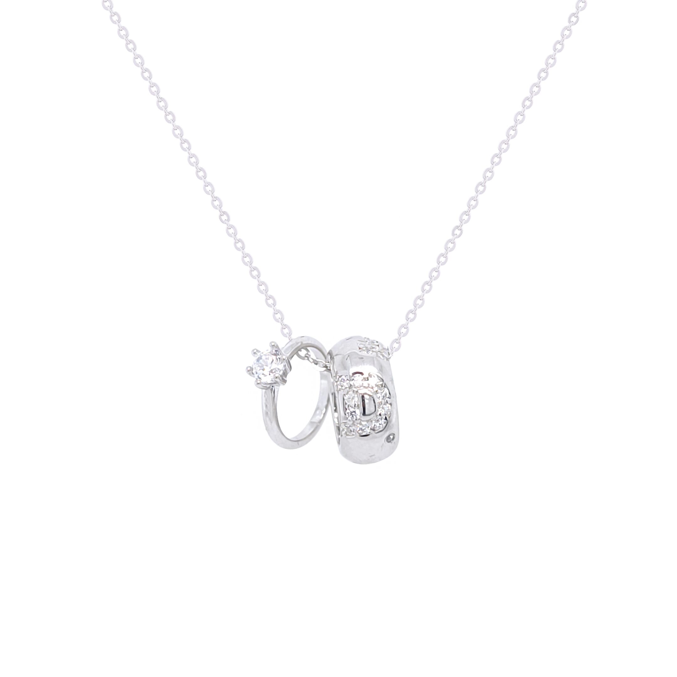 Asfour Crystal Chain Necklace With Ring & Band Pendant In 925 Sterling Silver-NR0553