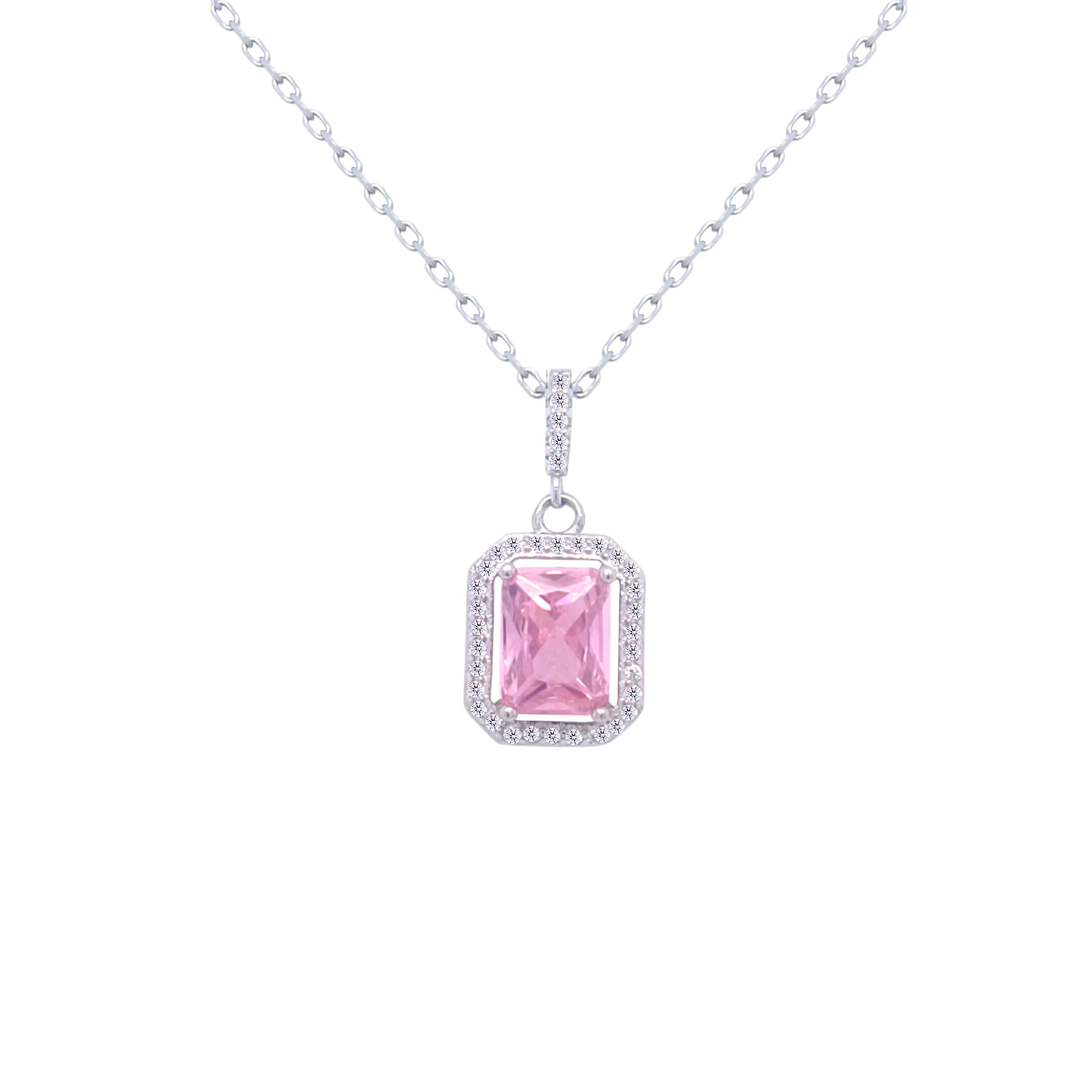 عصفور كريستال سلسلة فضة عيار 925 شكل اميرالد وردي مرصع بالزركون - ND0448-O