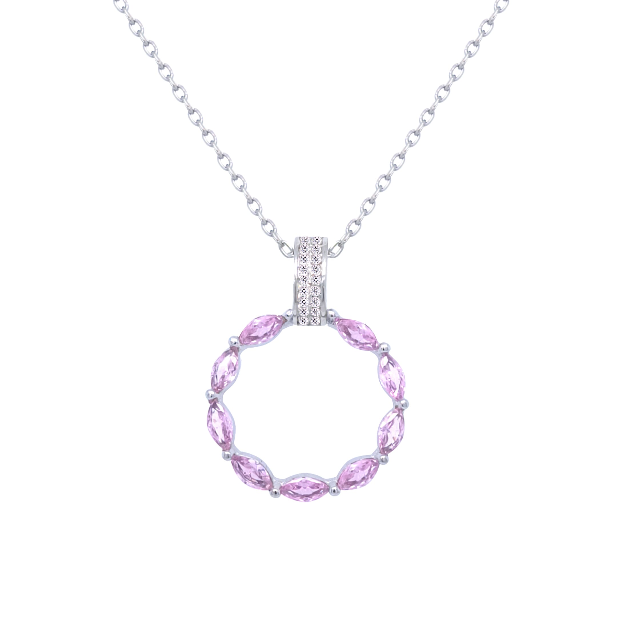 عصفور كريستال سلسلة فضة عيار 925 علي شكل حلقة بلون وردي مرصعة بفصوص الزركون - ND0433-O