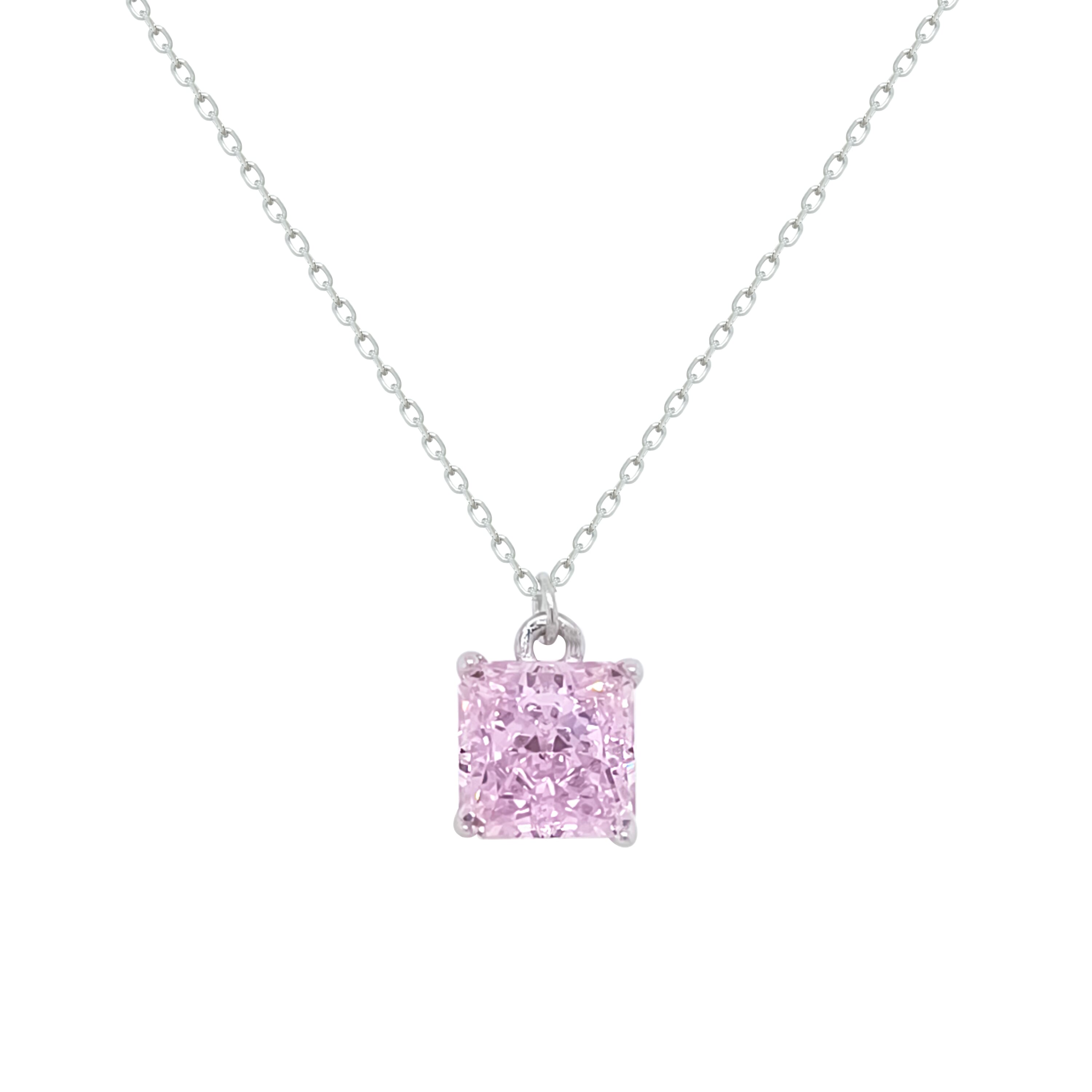 عصفور كريستال سلسلة فضة عيار 925 مرصعة بفص زركون مربع وردي ND0561-O