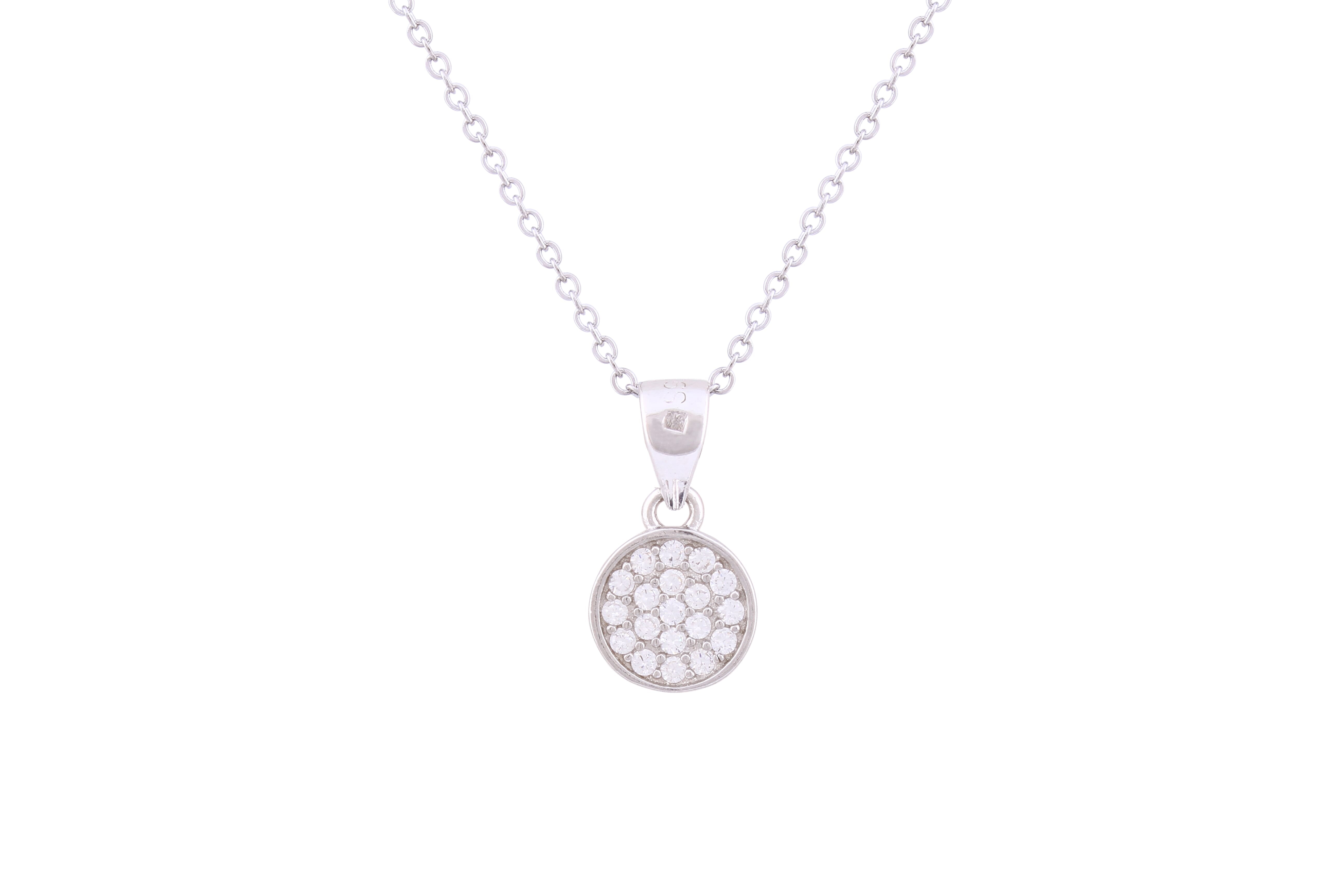 Asfour Crystal Chain Necklace With Round Pendant Inlaid With Zircon In 925 Sterling Silver ND0216