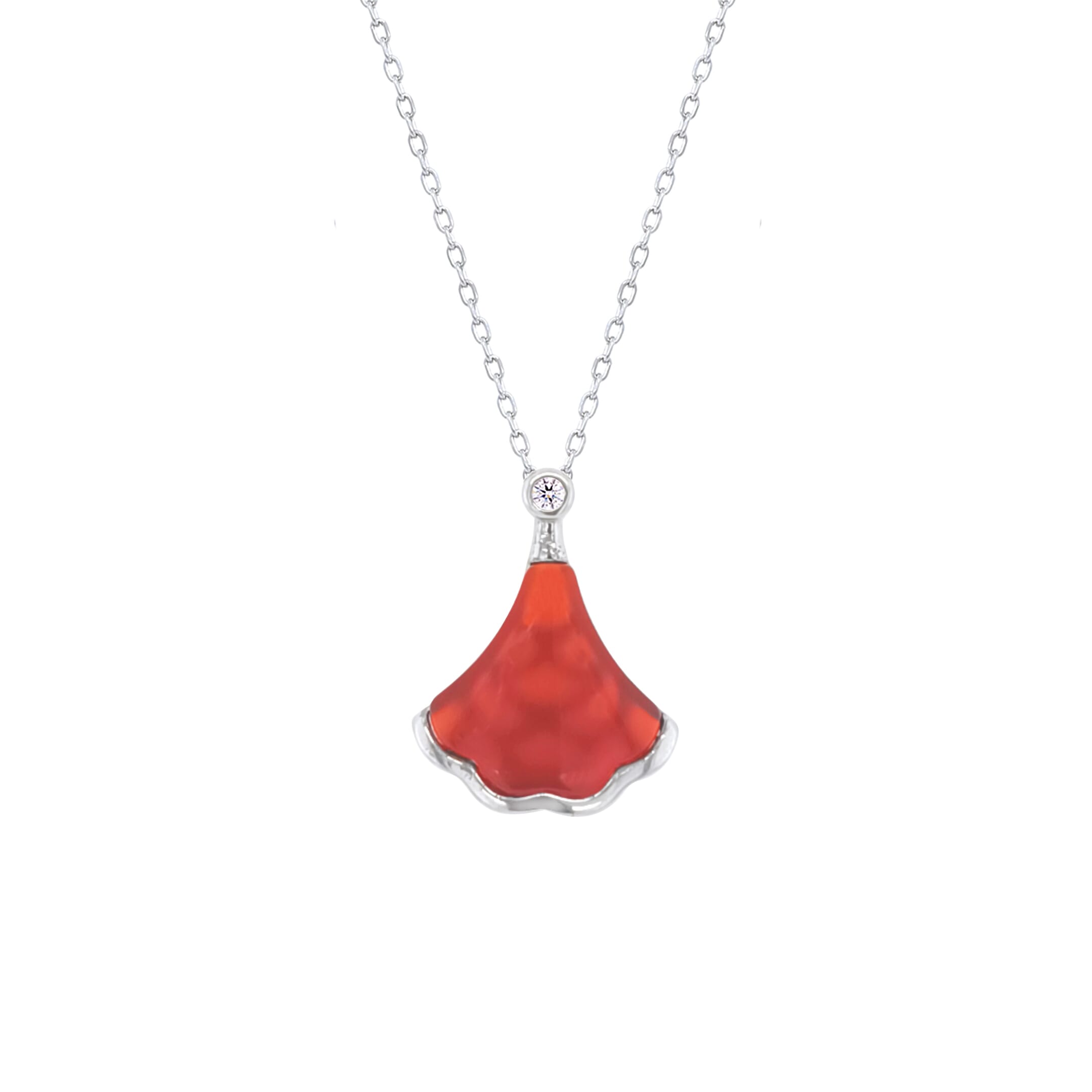 عصفور كريستال سلسلة فضة عيار 925 علي شكل مروحة يد حمراء - ND0443-HS