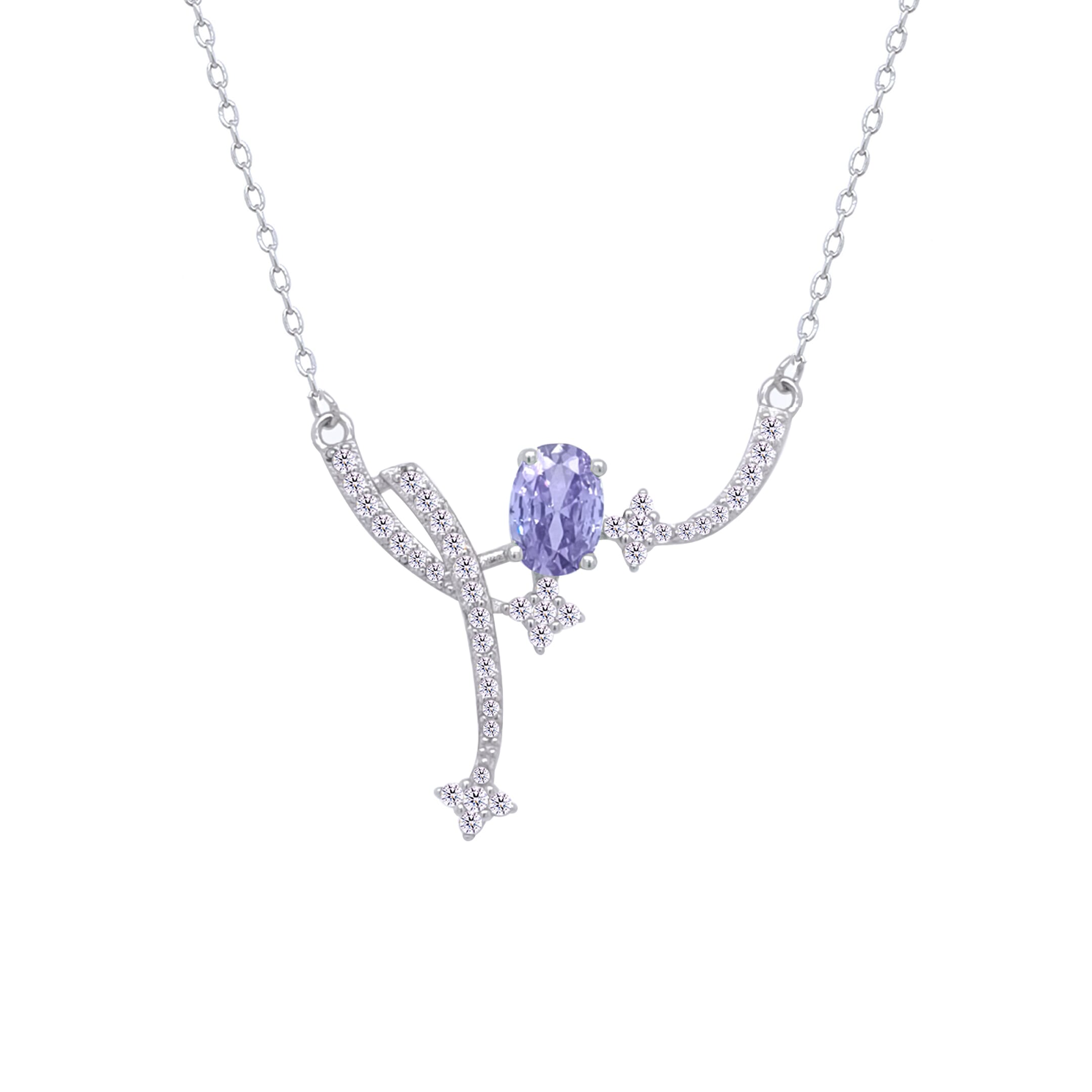 عصفور كريستال سلسلة فضة عيار 925 بتصميم فني زخرفي مرصع بفص زركون تنزانيت - ND0455-WN