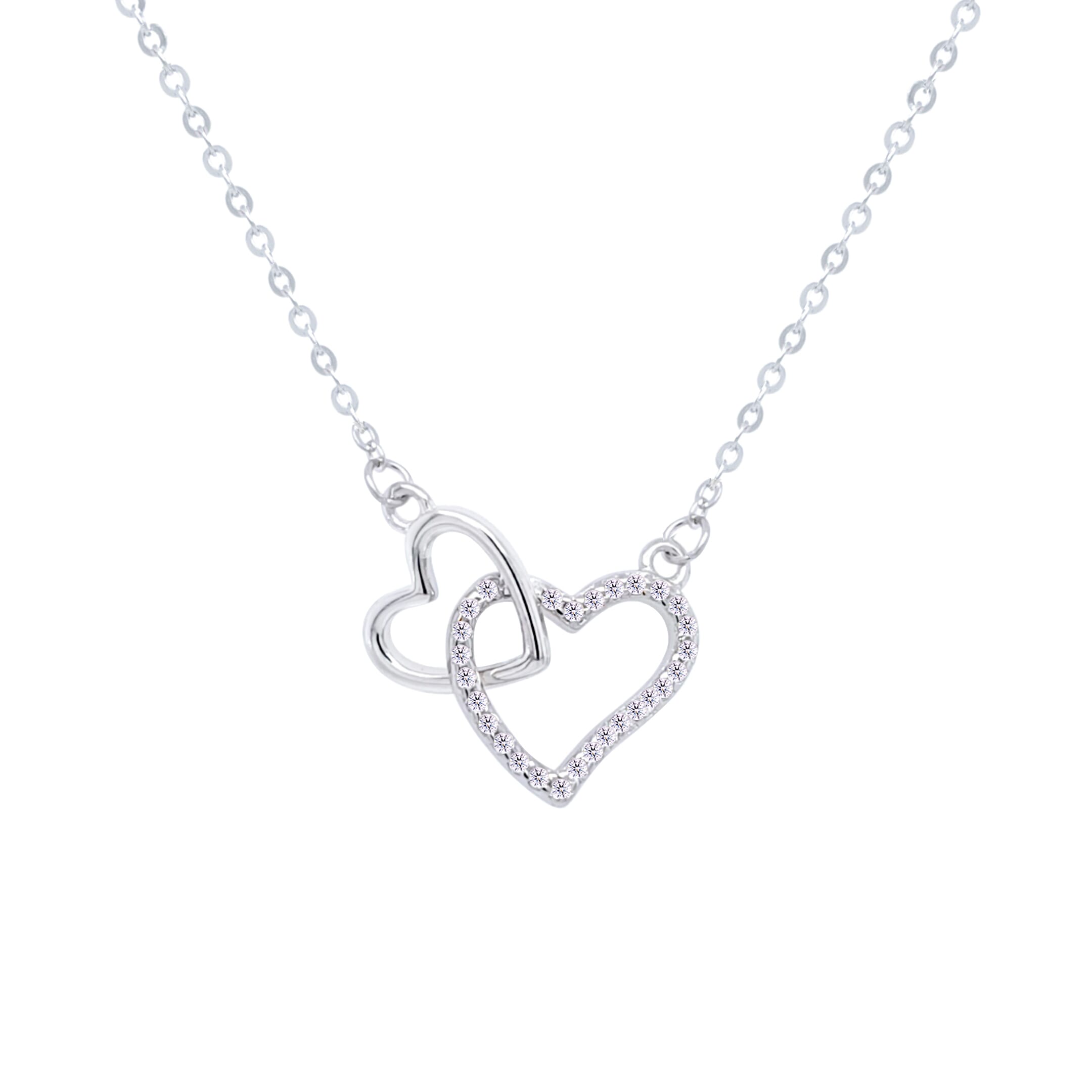 عصفور كريستال سلسلة فضة عيار 925 علي شكل قلوب مرصعة بفصوص الزركون - ND0407
