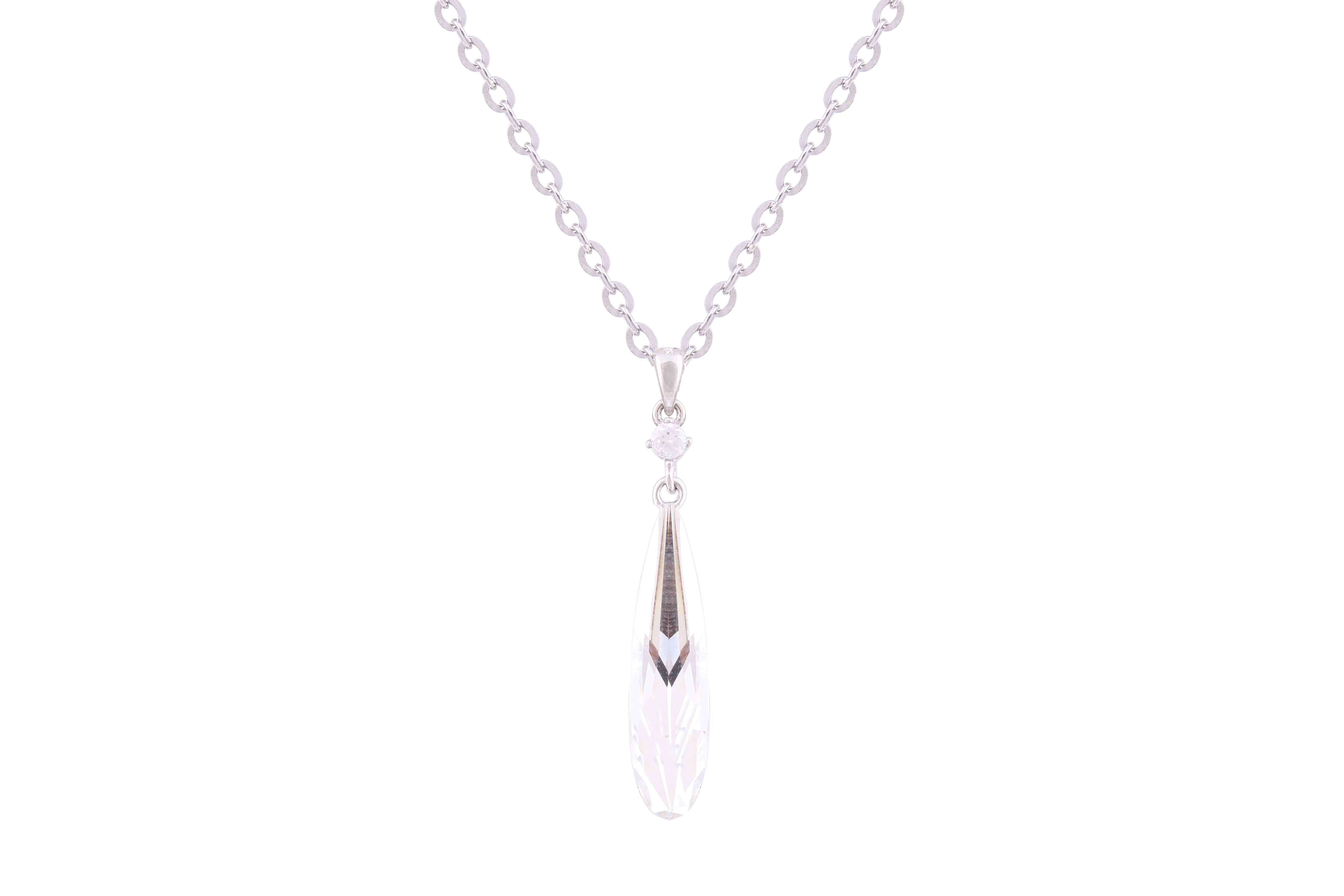 Asfour Crystal Chain Necklace With Water Drop Design In 925 Sterling Silver ND0249