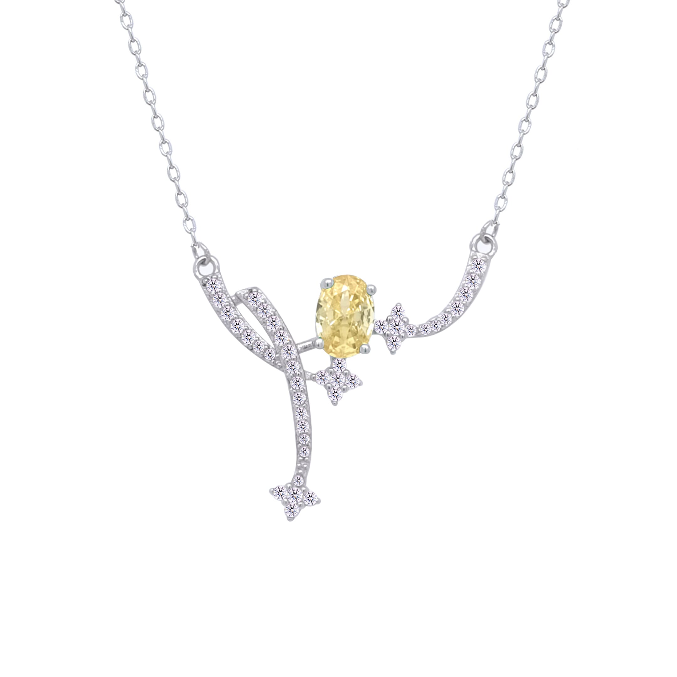 Asfour Crystal Chain Necklace With Yellow Art deco Desing In 925 Sterling Silver-ND0455-WY
