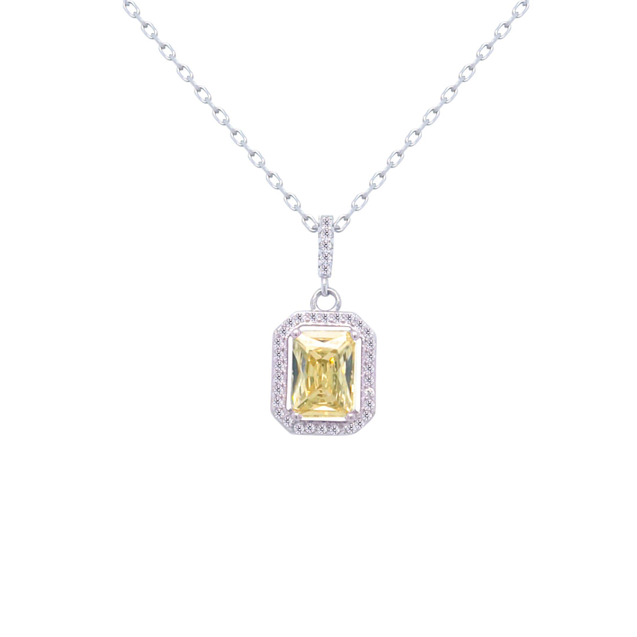 عصفور كريستال سلسلة فضة عيار 925 شكل اميرالد اصفر مرصع بالزركون - ND0448-Y