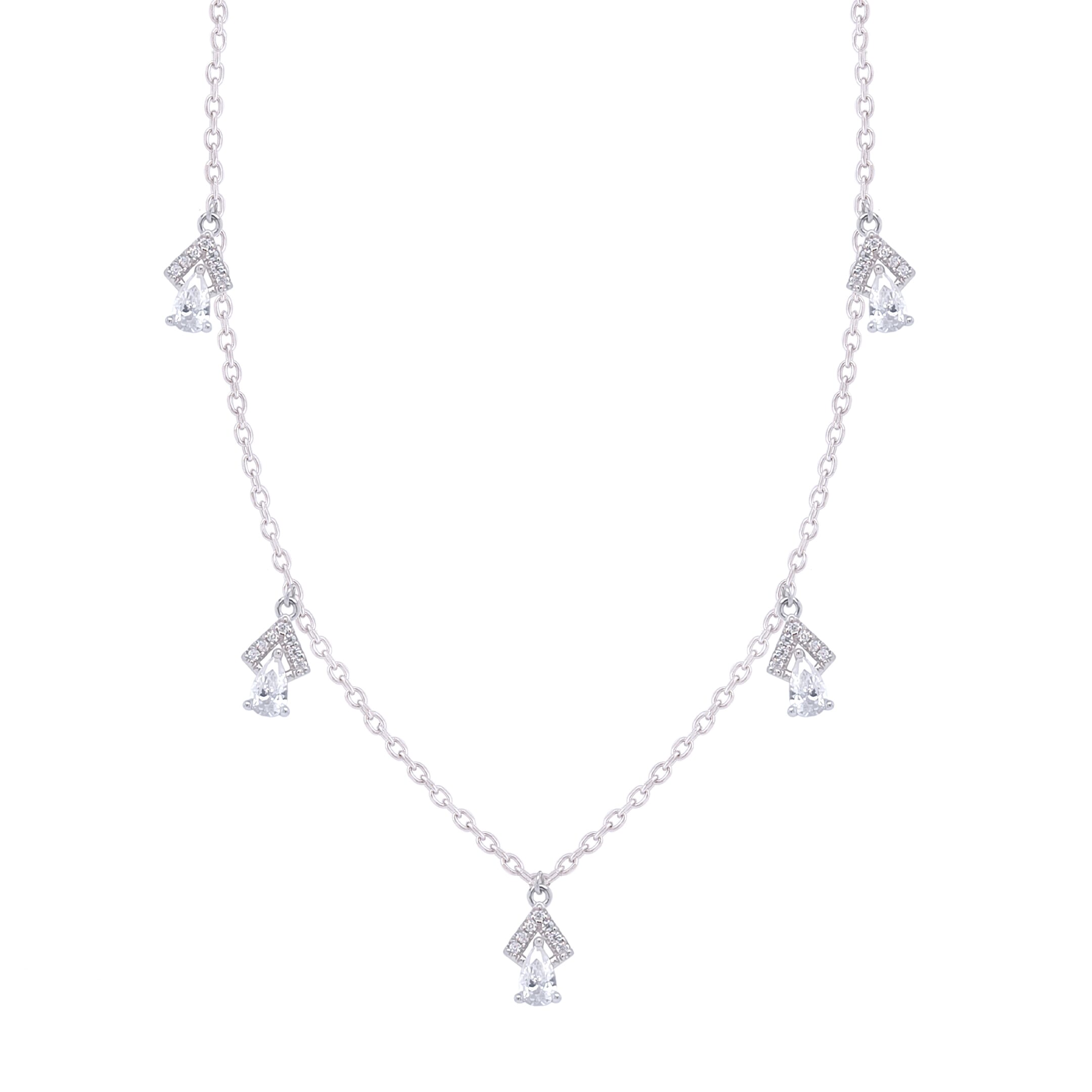 Asfour Crystal Charm Necklace With Decorative Pear Pendant In 925 Sterling Silver-ND0362