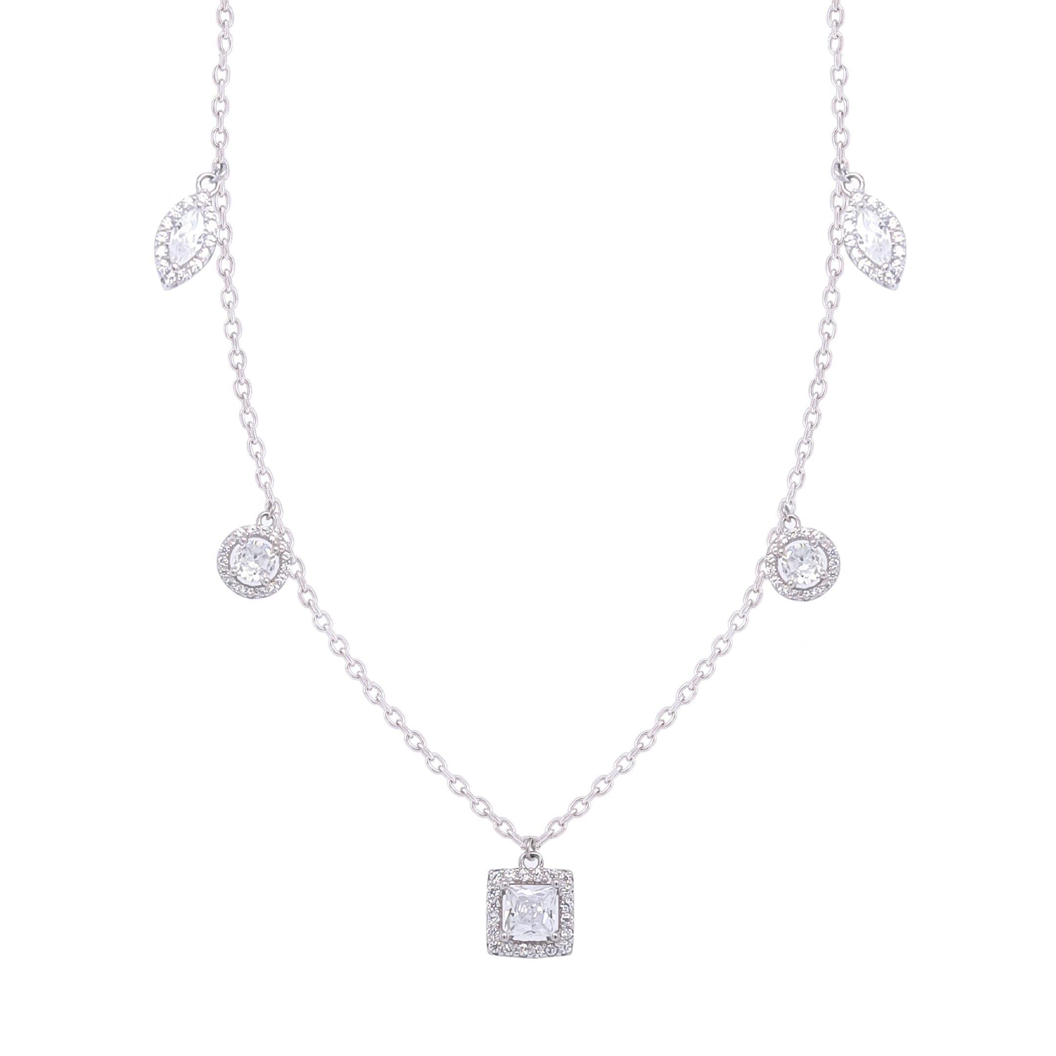 Asfour Crystal Charm Necklace With Multi Shapes Pendant In 925 Sterling Silver-ND0359