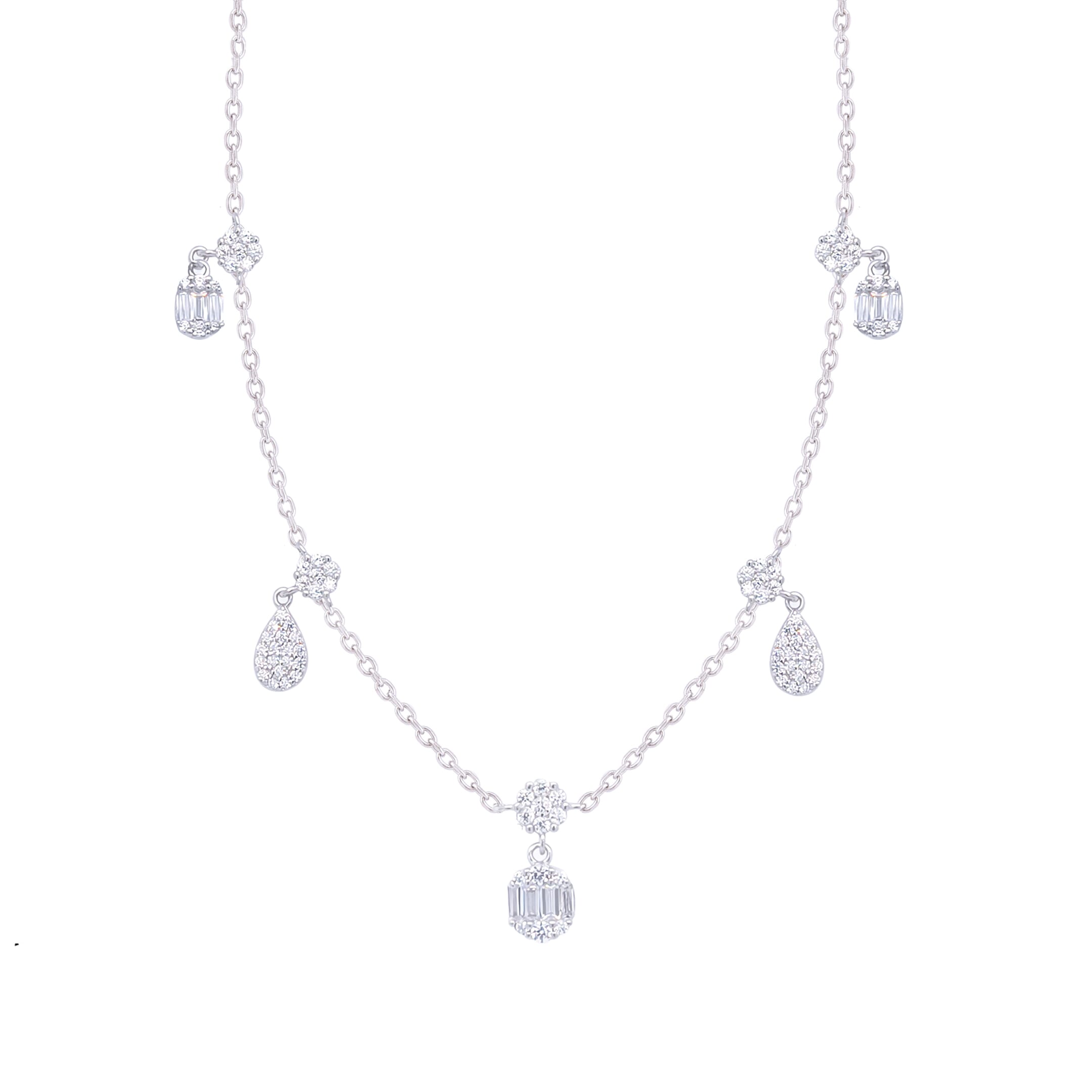 Asfour Crystal Charm Necklace With Pear & Art Deco Pendant In 925 Sterling Silver-ND0357