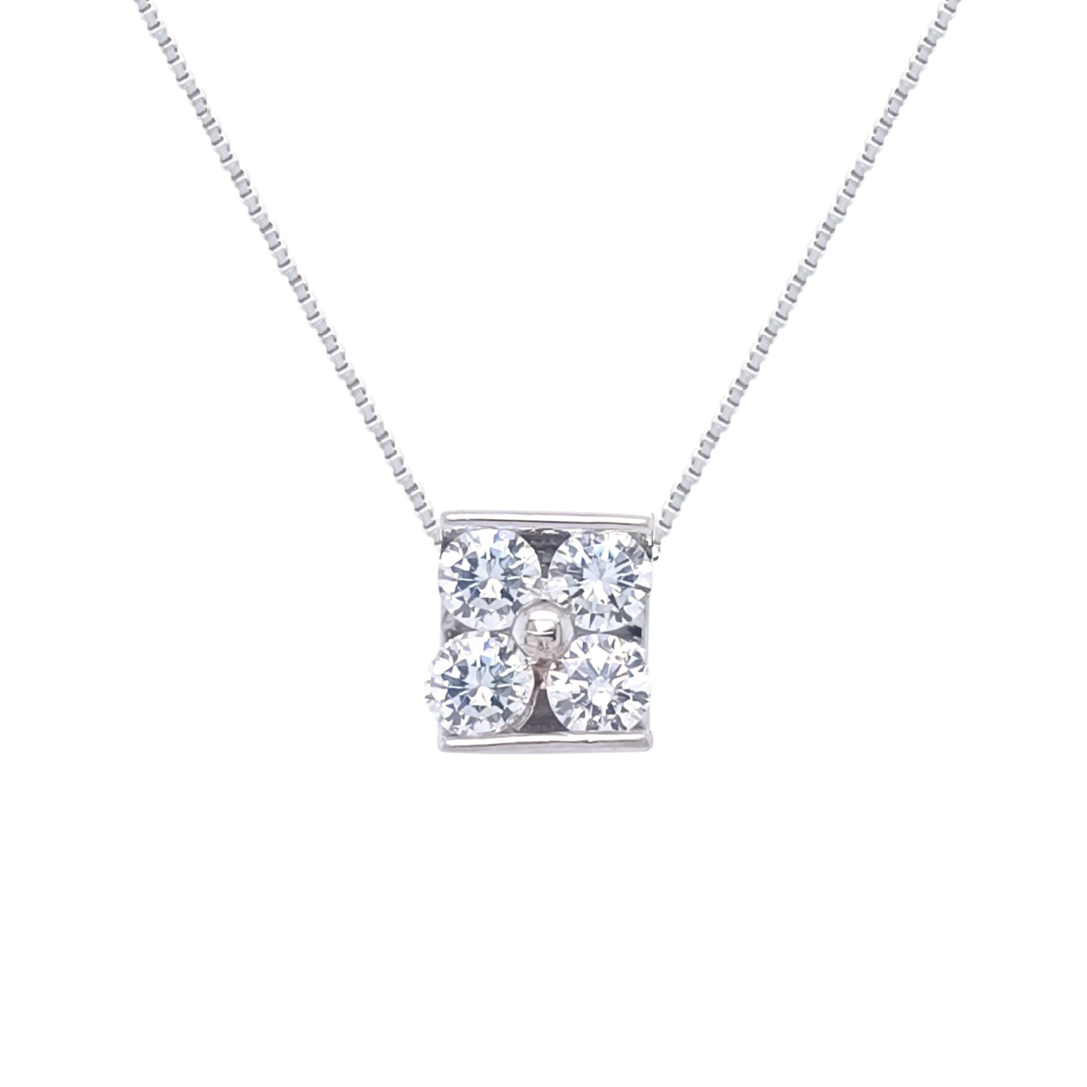 Asfour Crystal Chian Necklace With Square Inlaid With Zircon In 925 Sterling Silver-ND0312