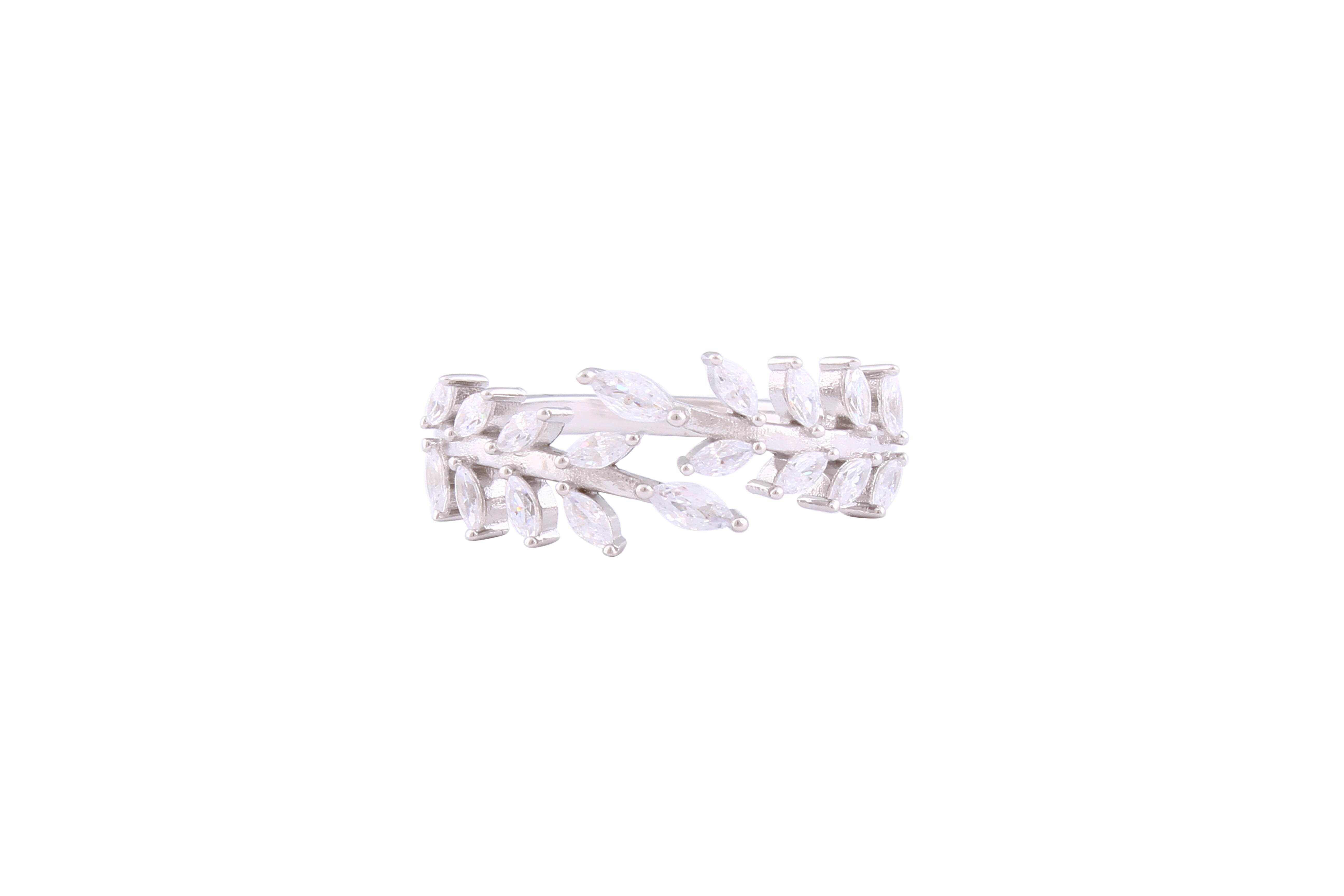 Asfour Crystal Cuff Ring With Leaf Design In 925 Sterling Silver-RD0150