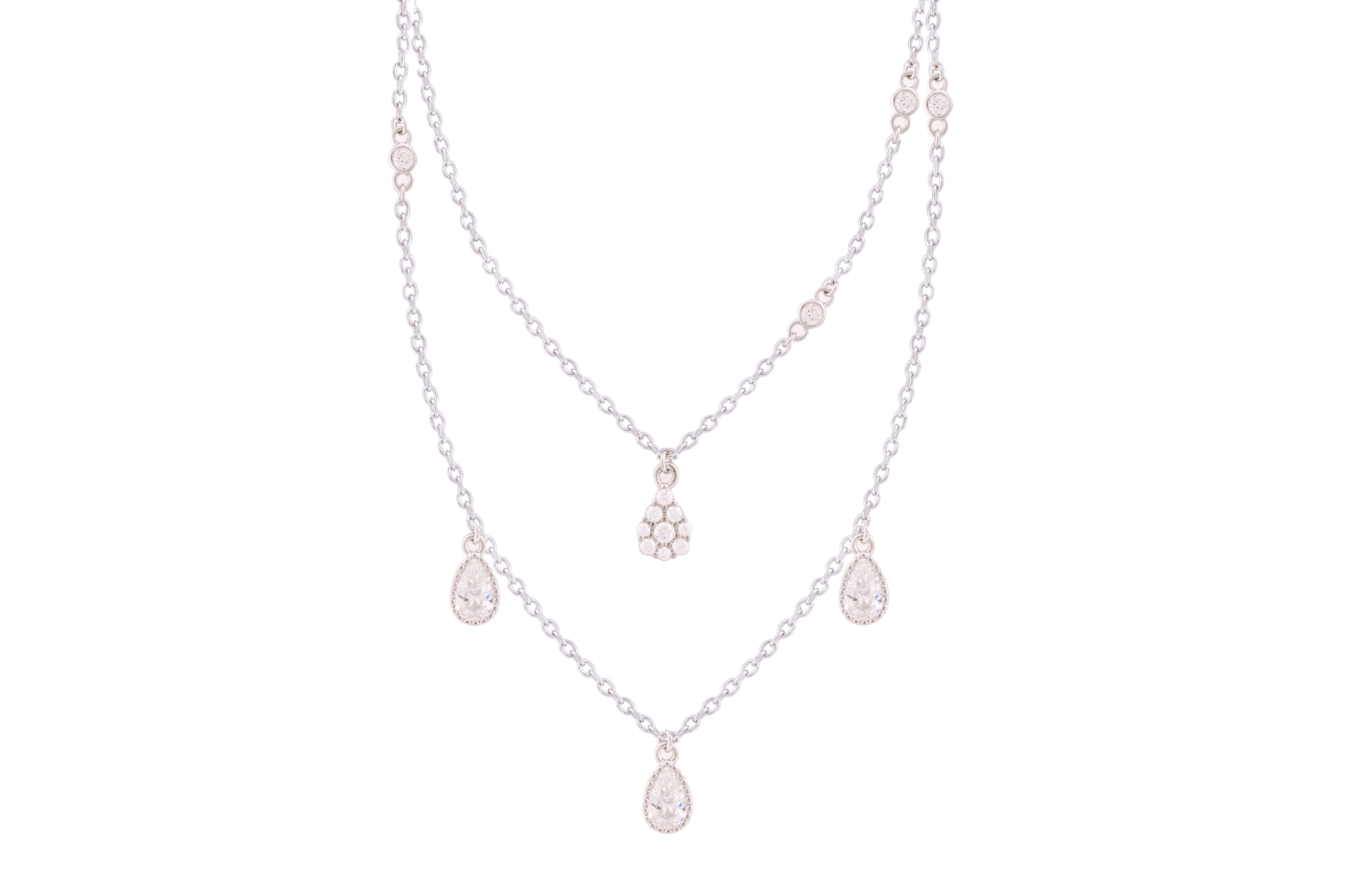 Asfour Crystal Doube Layer Chain Necklace With Pear Design In 925 Sterling Silver-ND0280