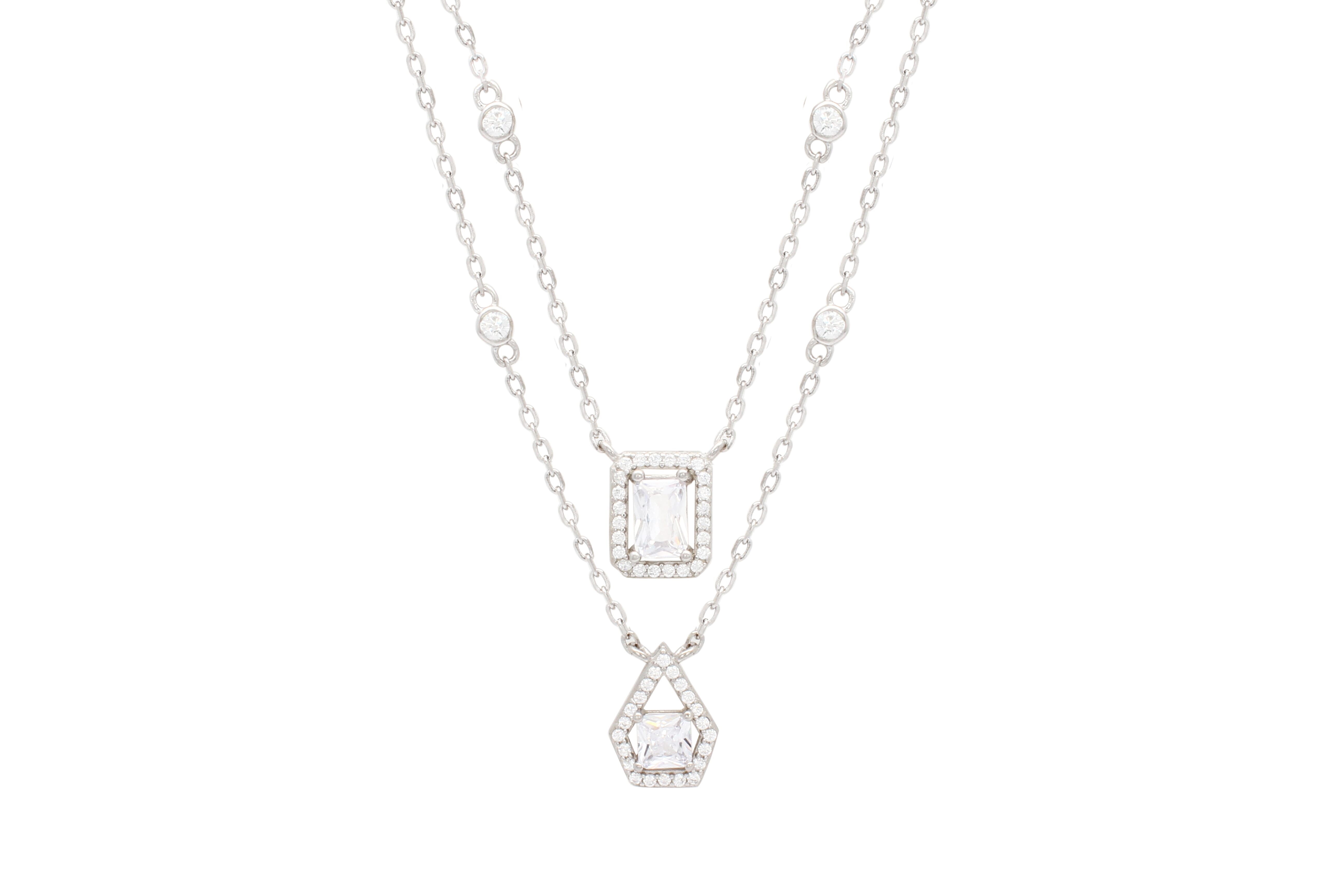 Asfour Crystal Double Layer Necklace With Decorative Design In 925 Sterling Silver-ND0033
