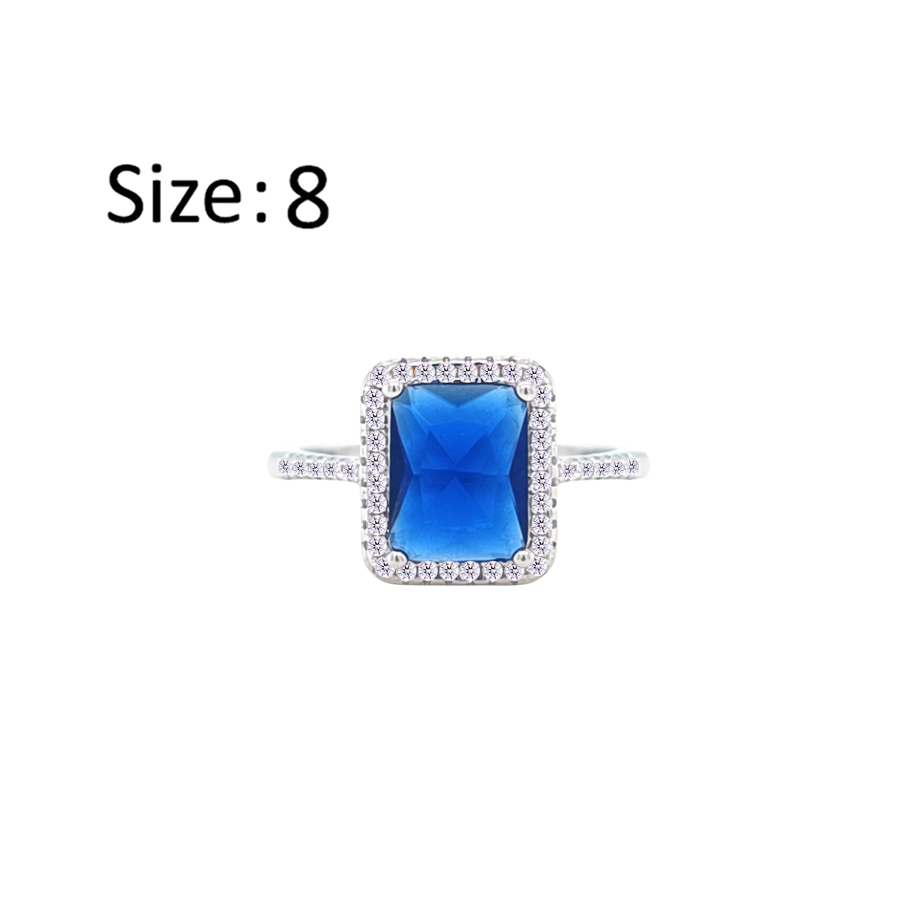 عصفور كريستال خاتم فضة عيار 925 مرصع بفص زركون اميرالد ازرق RM0107-B-8