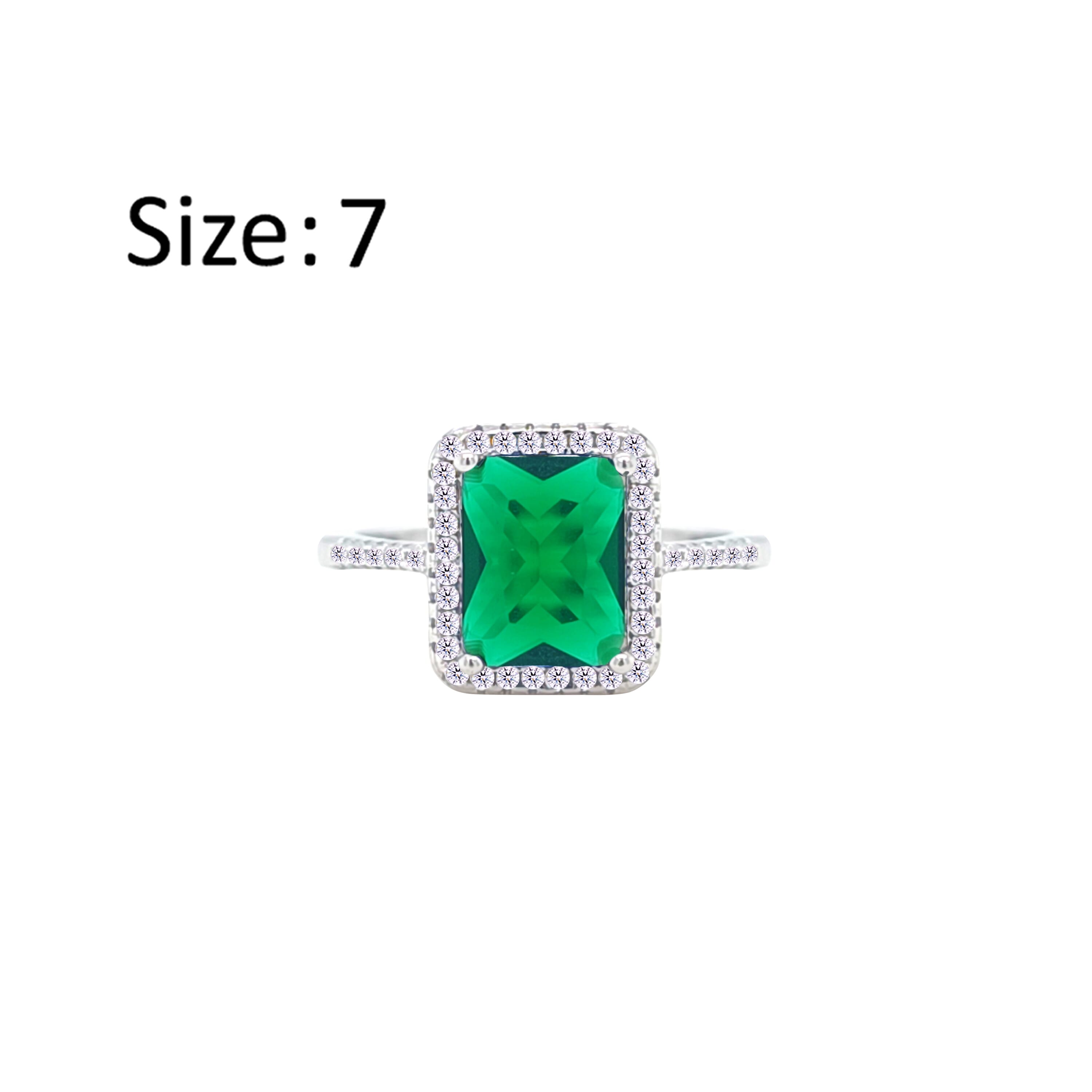 عصفور كريستال خاتم فضة عيار 925 مرصع بفص زركون اميرالد اخضر RM0107-G-7