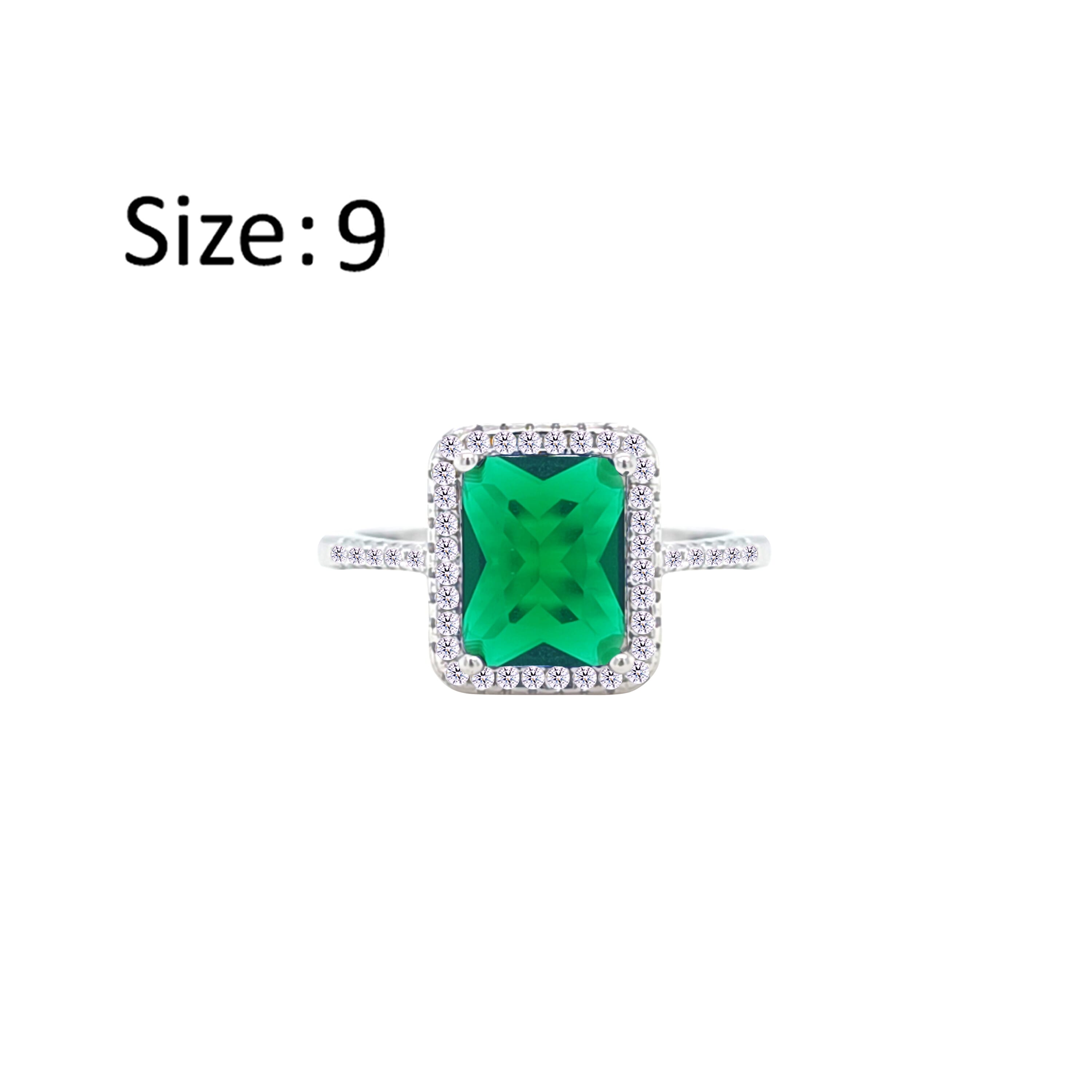 عصفور كريستال خاتم فضة عيار 925 مرصع بفص زركون اميرالد اخضر RM0107-G-9