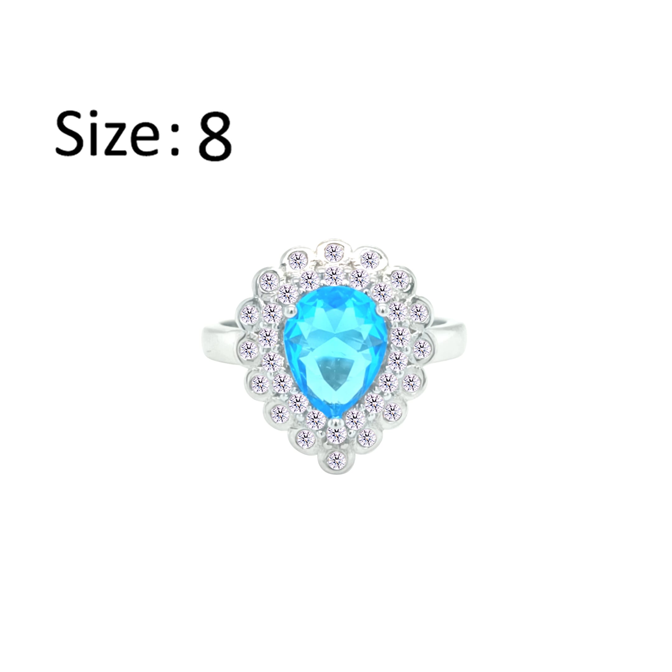 عصفور كريستال خاتم فضة عيار 925 بتصميم كمثري اكوامارين مرصع بالزركون - RD0203-WM-8