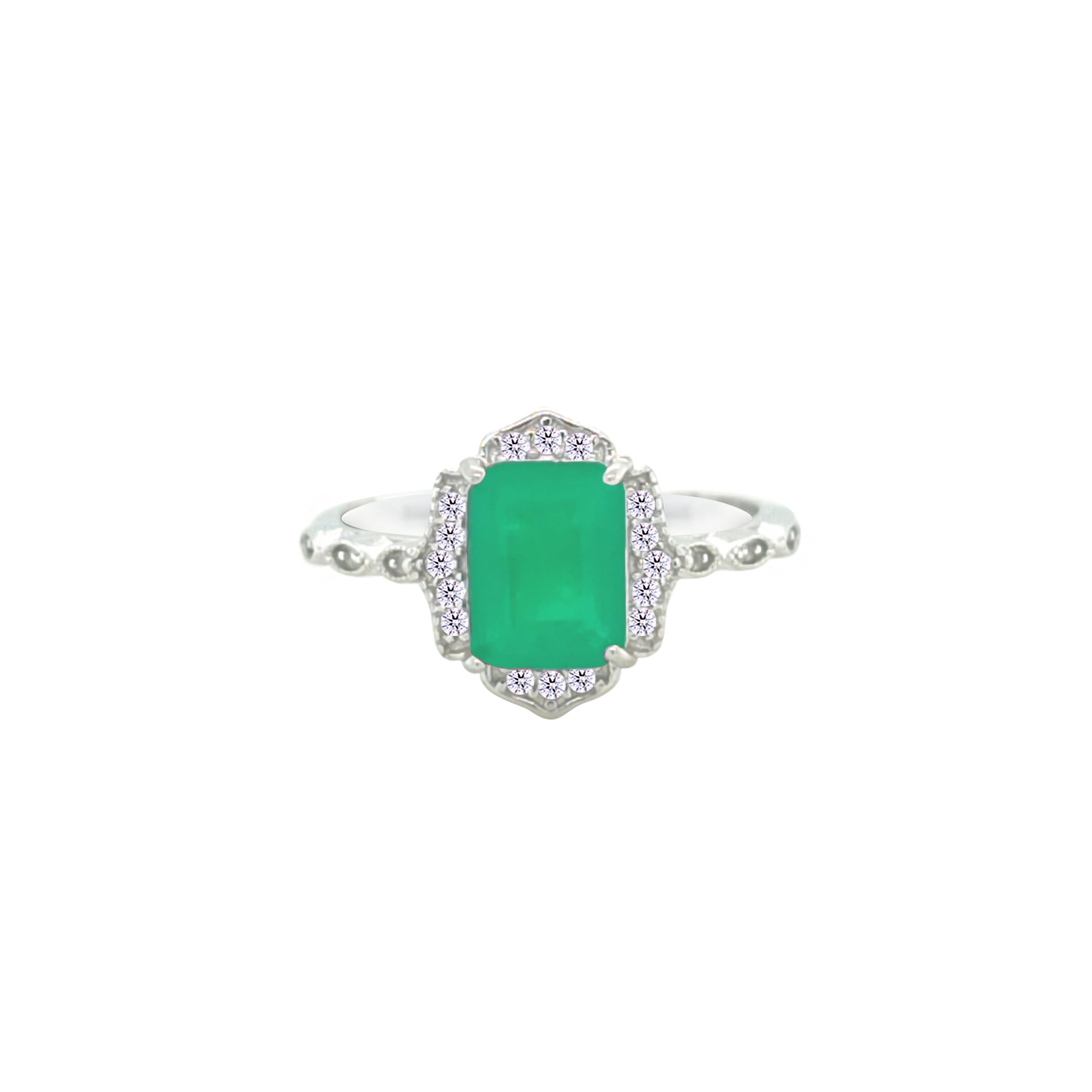 عصفور كريستال دبلة فضة عيار 925 بتصميم اميرالد اخضر مرصع بالزركون - RD0186-G-7