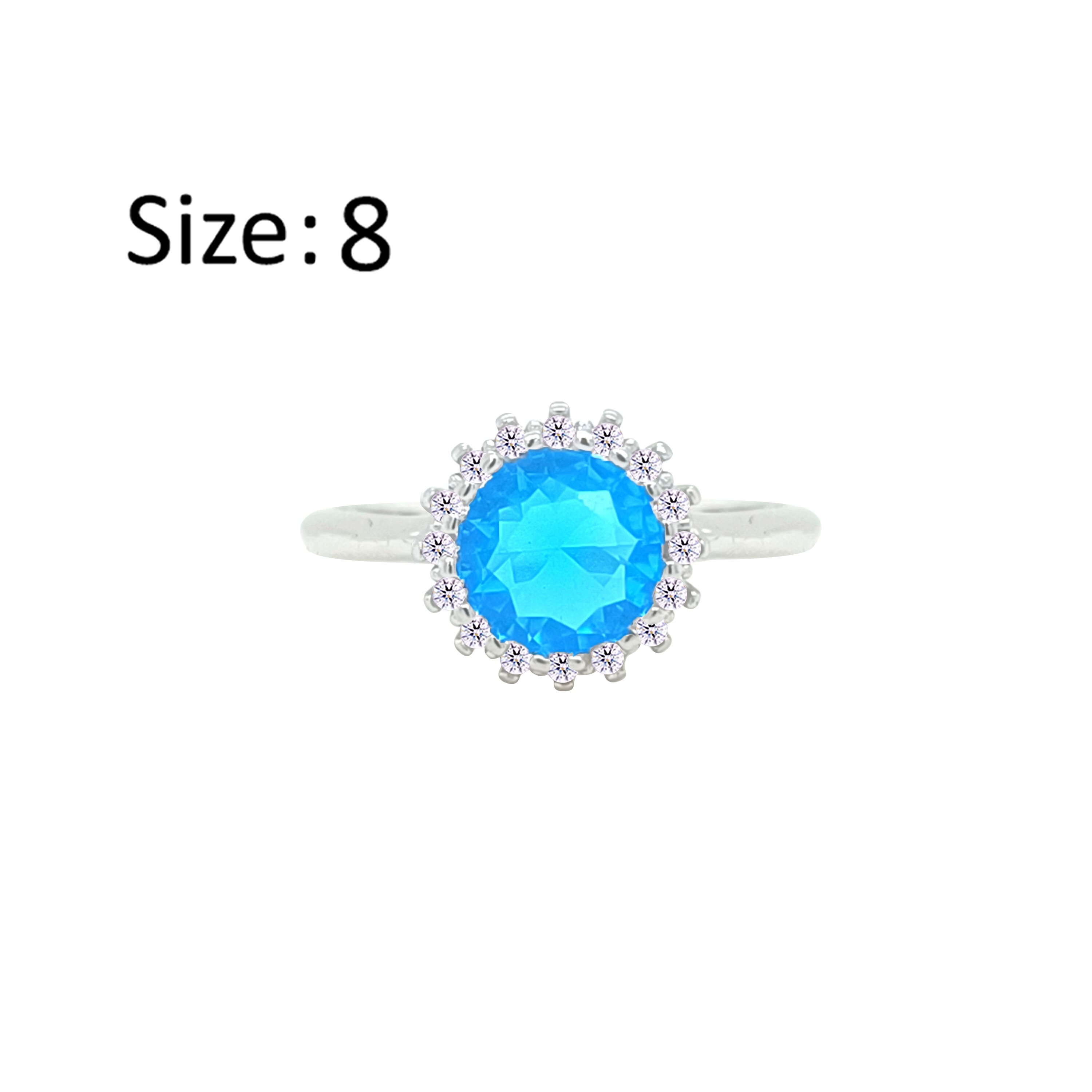 عصفور كريستال خاتم فضة عيار 925 بتصميم دائري اكوامارين مرصع بفصوص الزركون RM0116-M-8