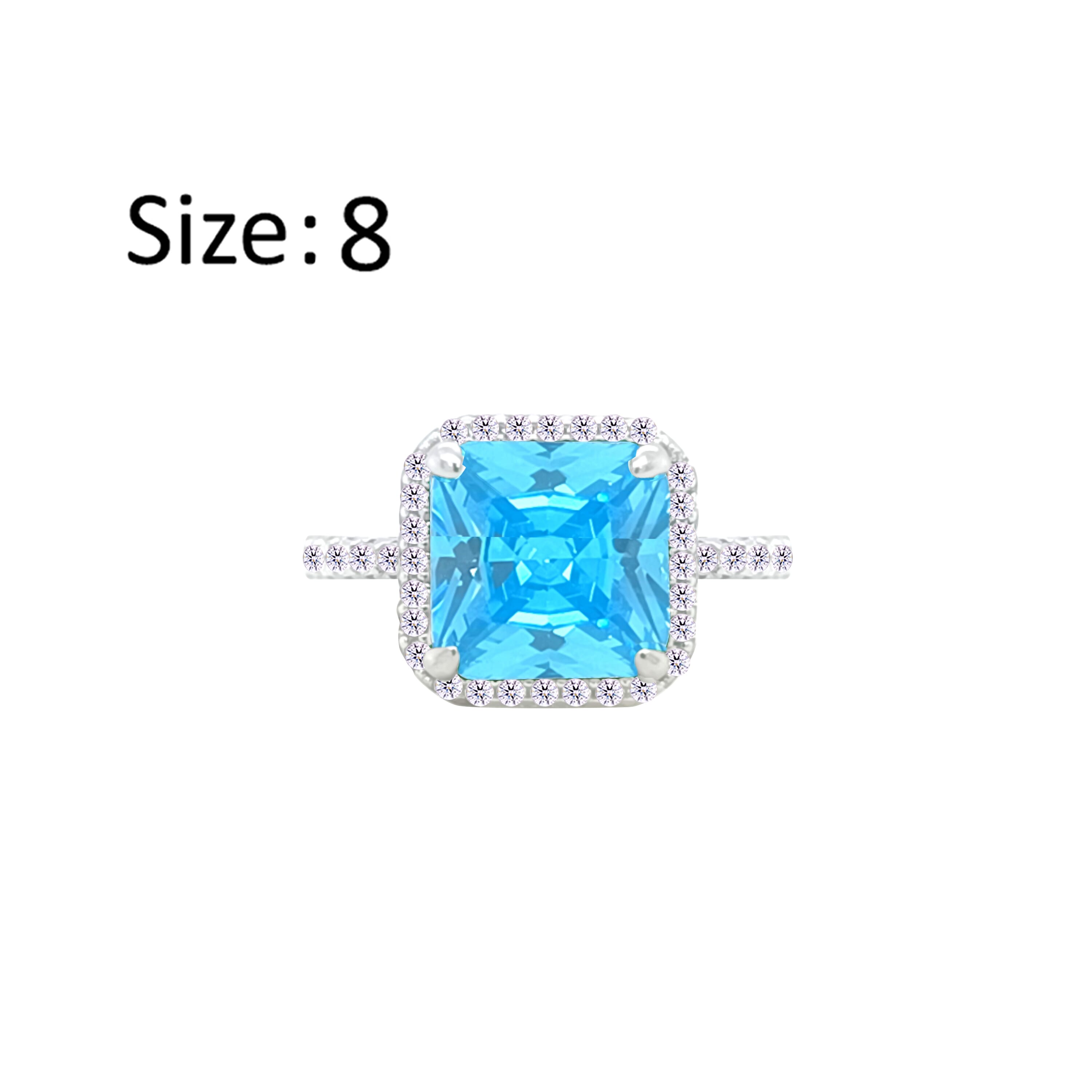 عصفور كريستال خاتم فضة عيار 925 بتصميم مربع اكوامارين مرصع بالزركون RM0111-M-8