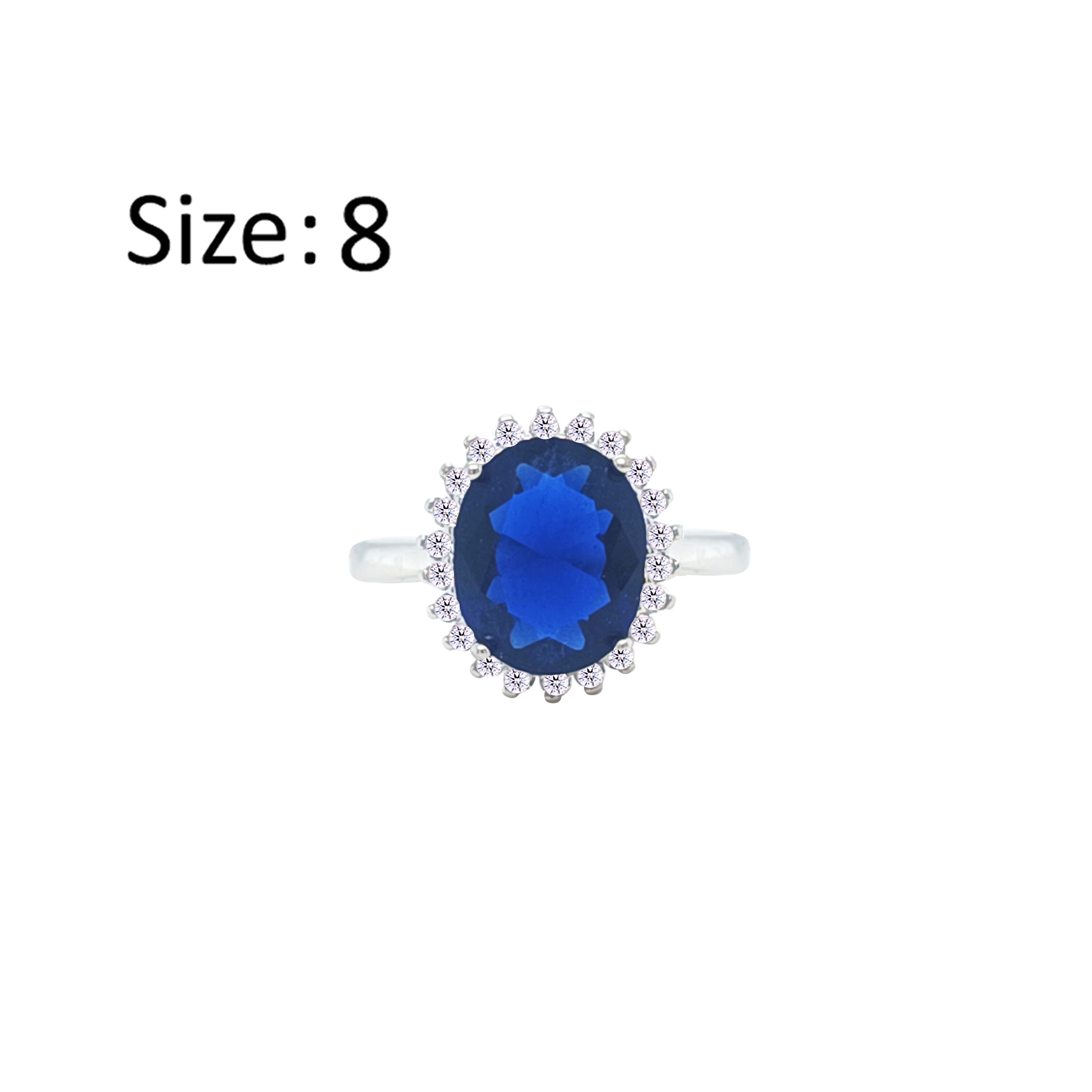 عصفور كريستال خاتم فضة عيار 925 بتصميم بيضاوي ازرق مرصع بالزركون RM0108-B-8