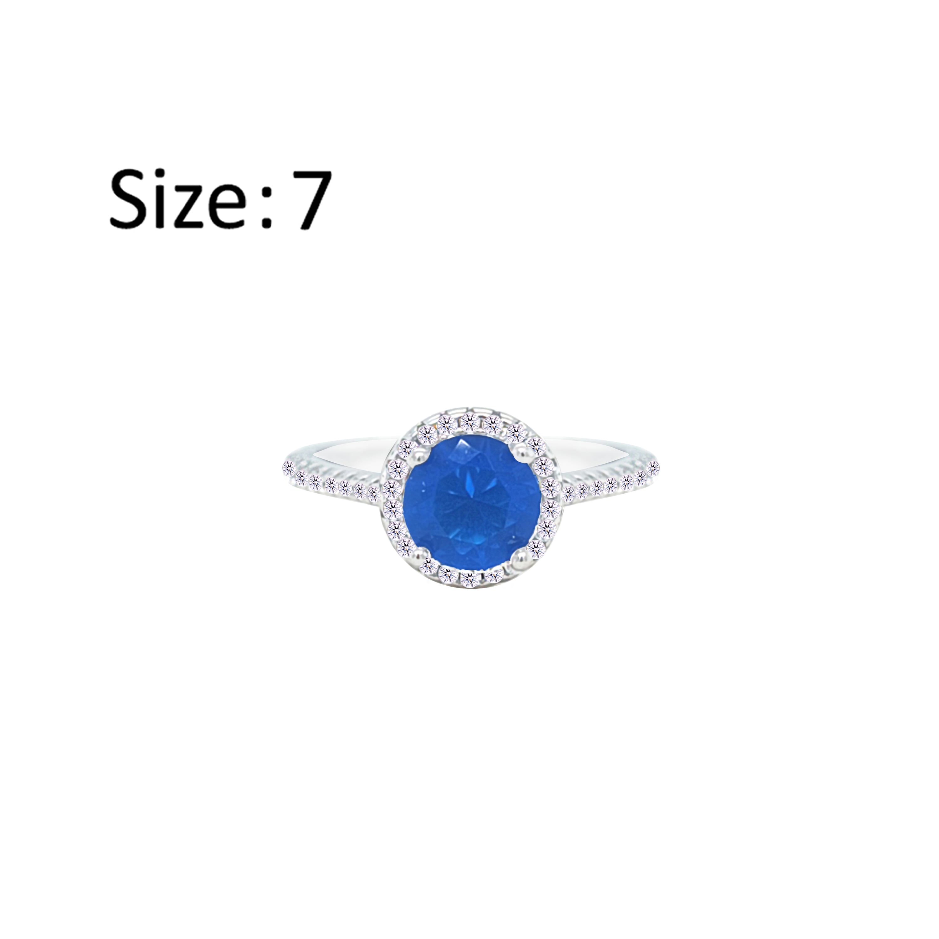 عصفور كريستال خاتم فضة عيار 925 بتصميم دائري ازرق مرصع بفصوص الزركون RM0115-B-7