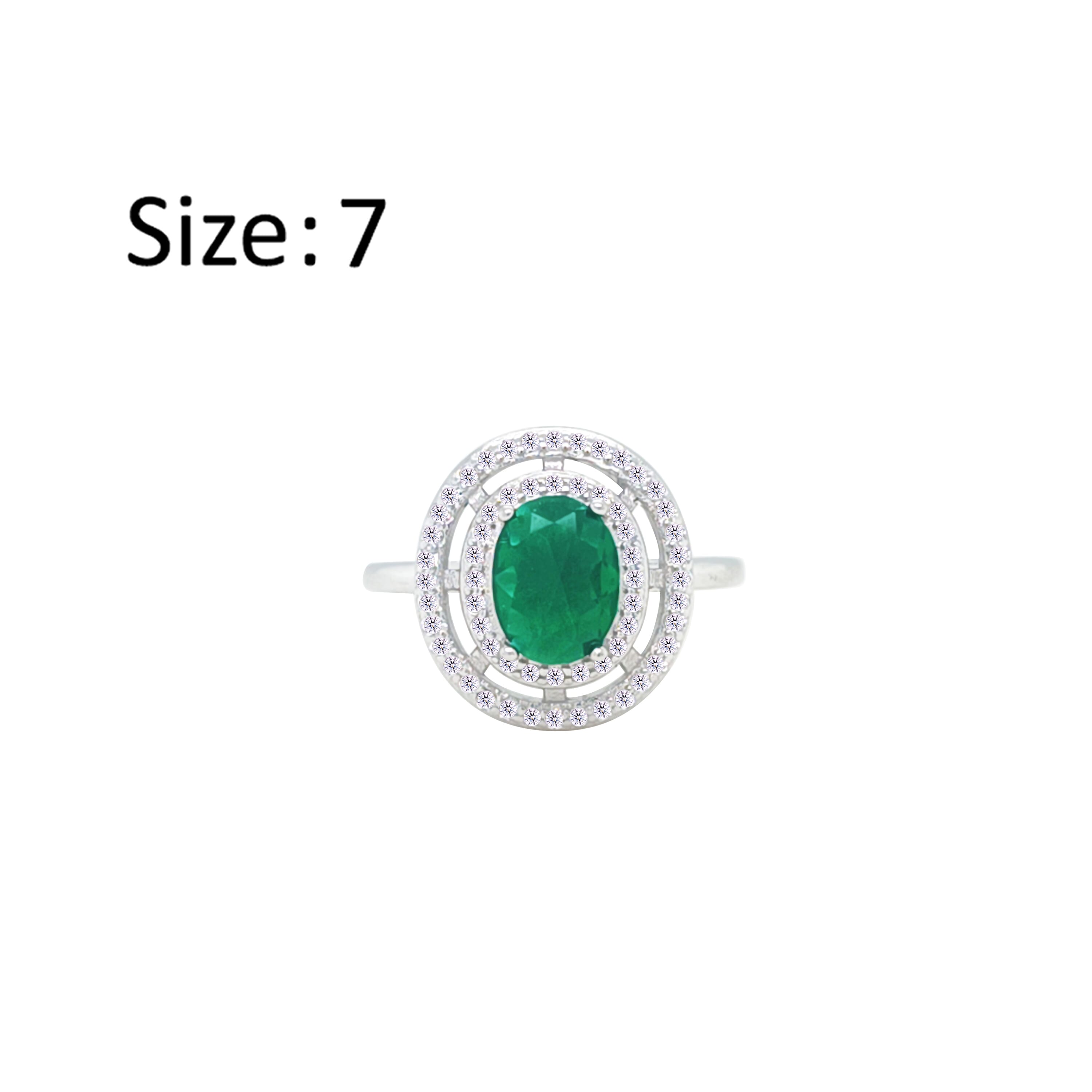 عصفور كريستال خاتم فضة عيار 925 بتصميم بيضاوي اخضر مرصع بالزركون RM0109-G-7