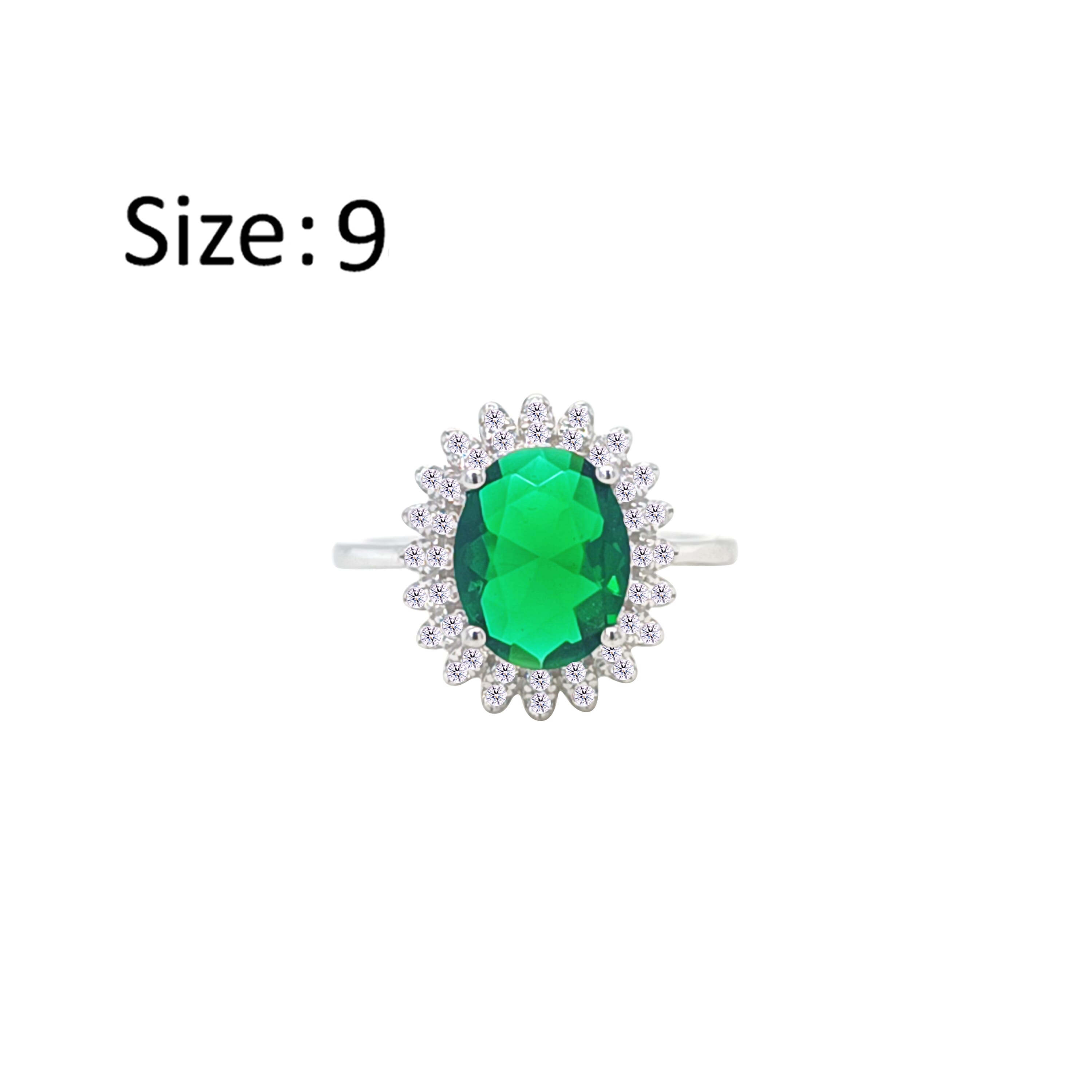 عصفور كريستال خاتم فضة عيار 925 بتصميم بيضاوي اخضر مرصع بالزركون RM0110-G-9