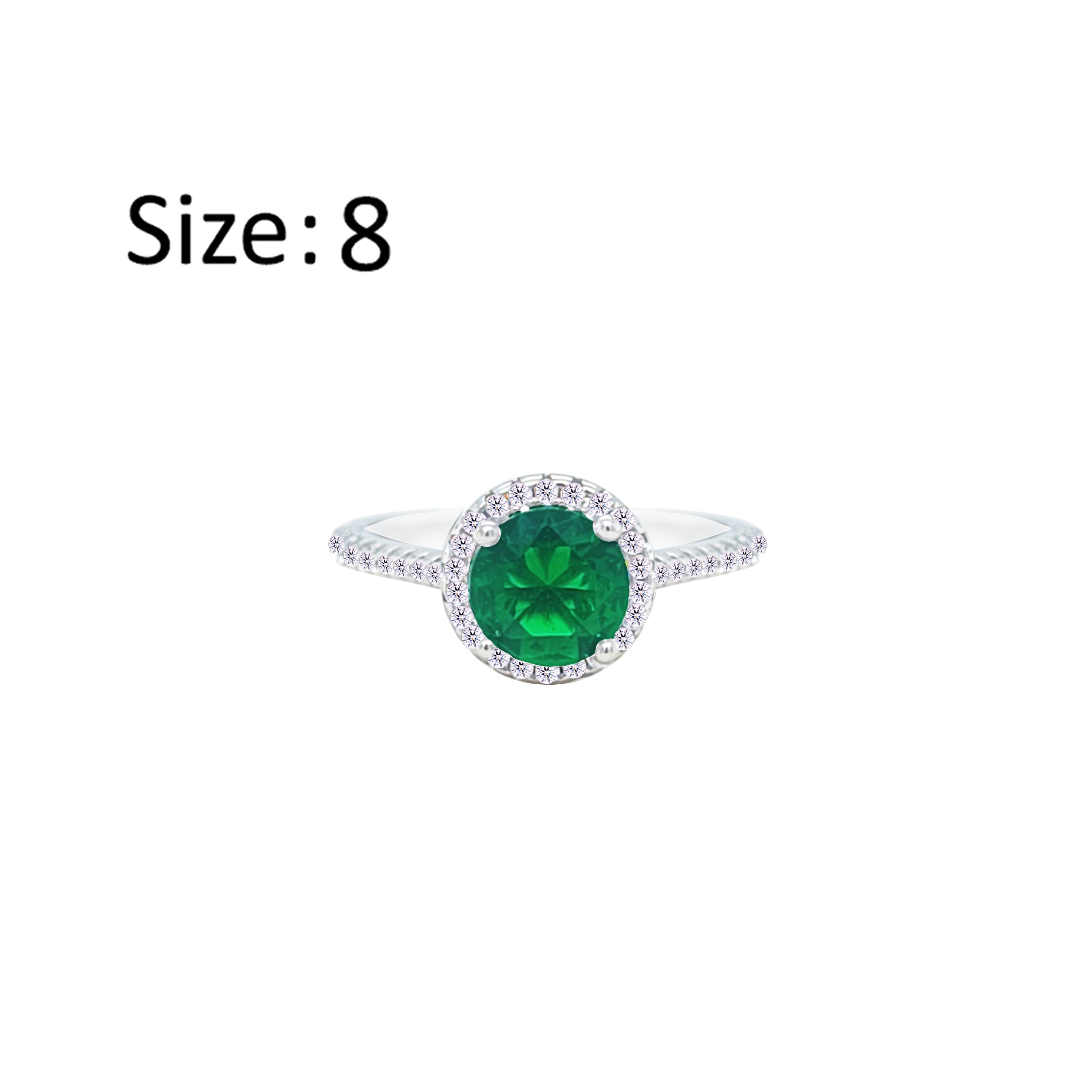 عصفور كريستال خاتم فضة عيار 925 بتصميم دائري اخضر مرصع بفصوص الزركون RM0115-G-8